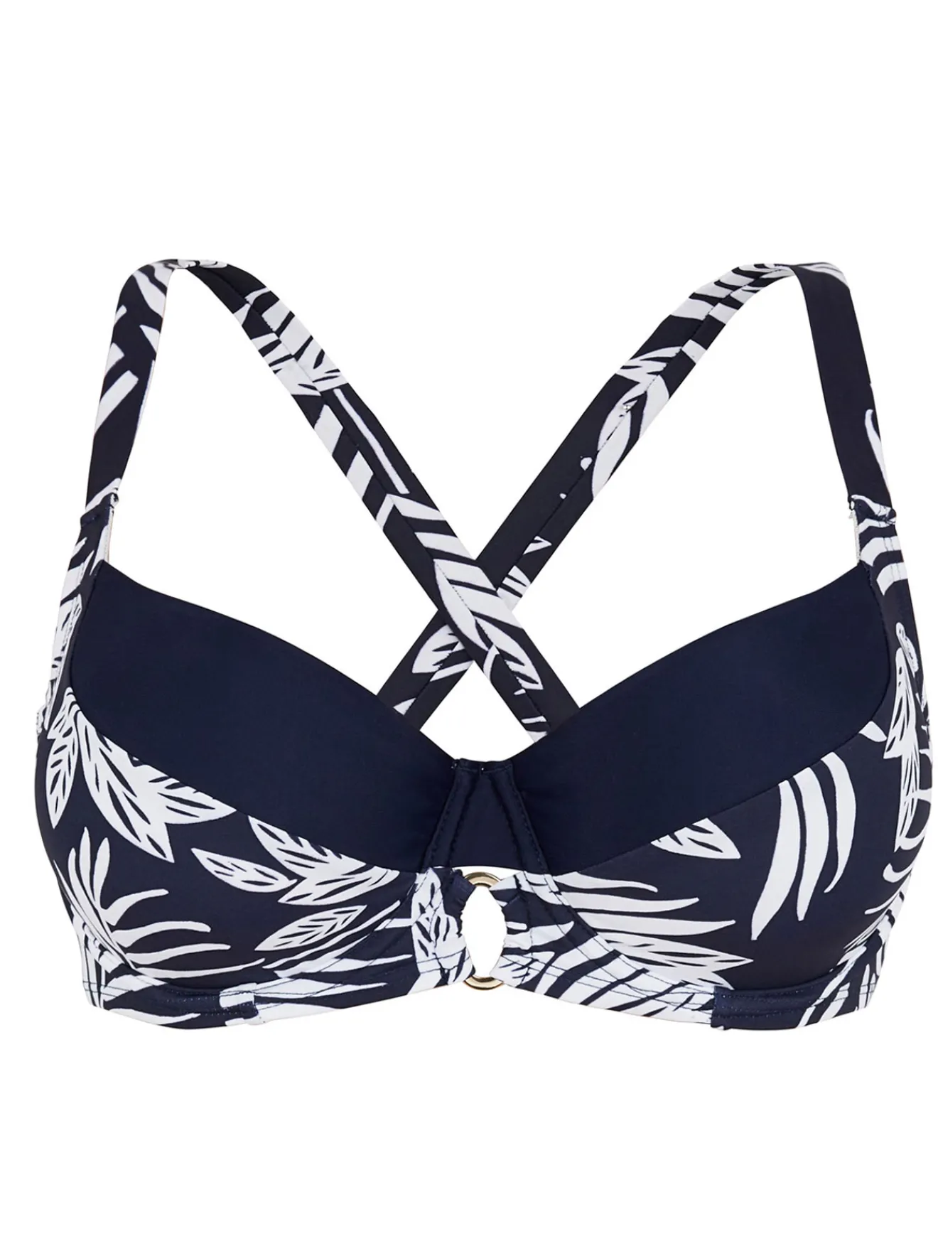 Le haut de maillot de bain à armatures Kelaa SANS COMPLEXE allie fantaisie et modernité avec son mix audacieux d’uni et d’imprimé graphique.
