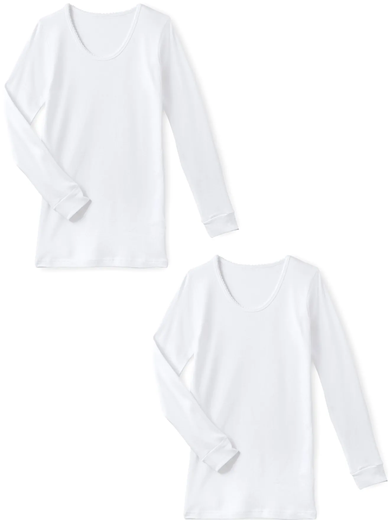 Coupe longue et bien couvrante. Finition picot à l’encolure et bord-côtes au bas des manches longues. Base ourlée.