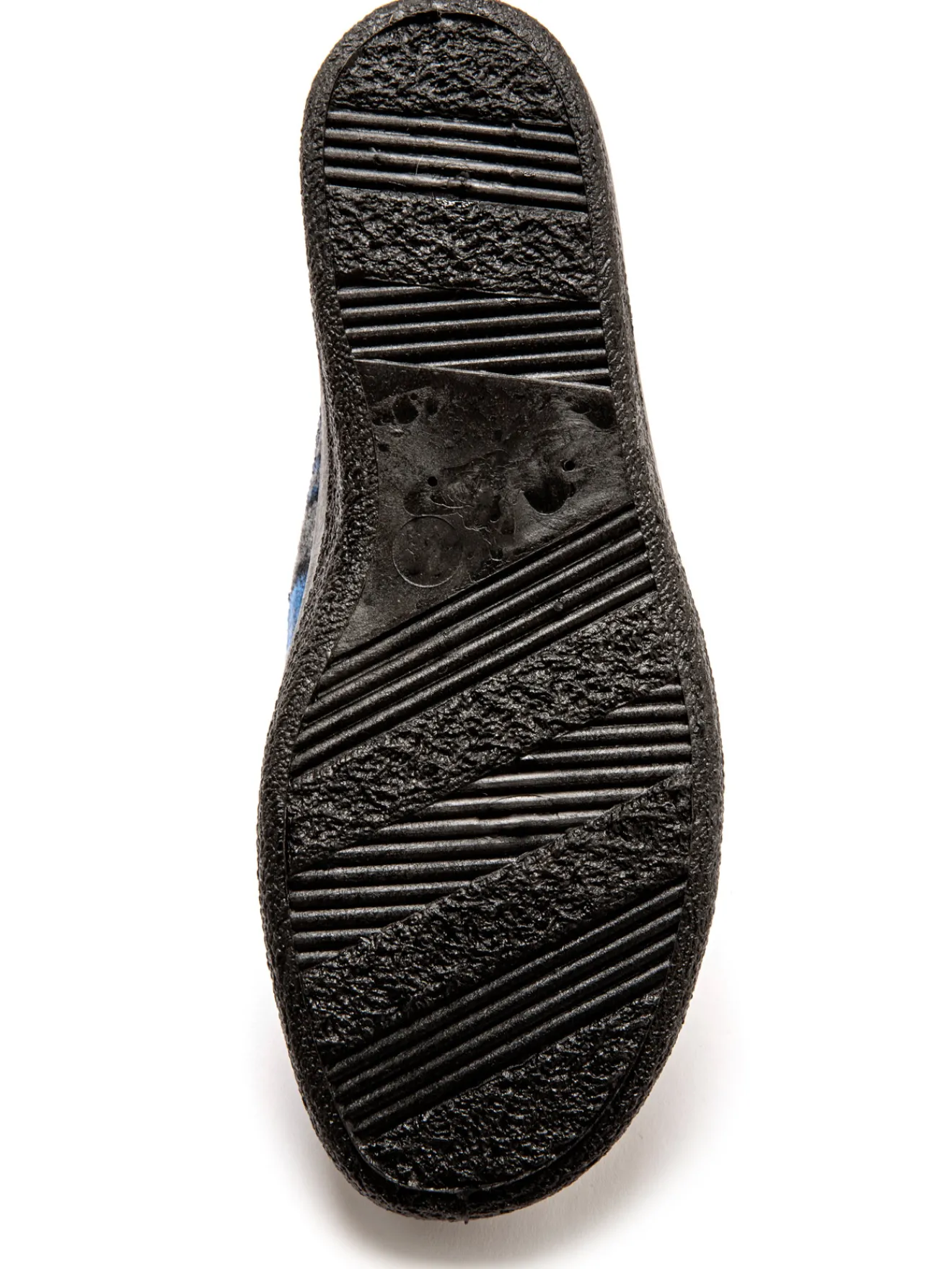 Dessus : textile. Finition biais. Semelle : élastomère. Fabriquées en Europe.