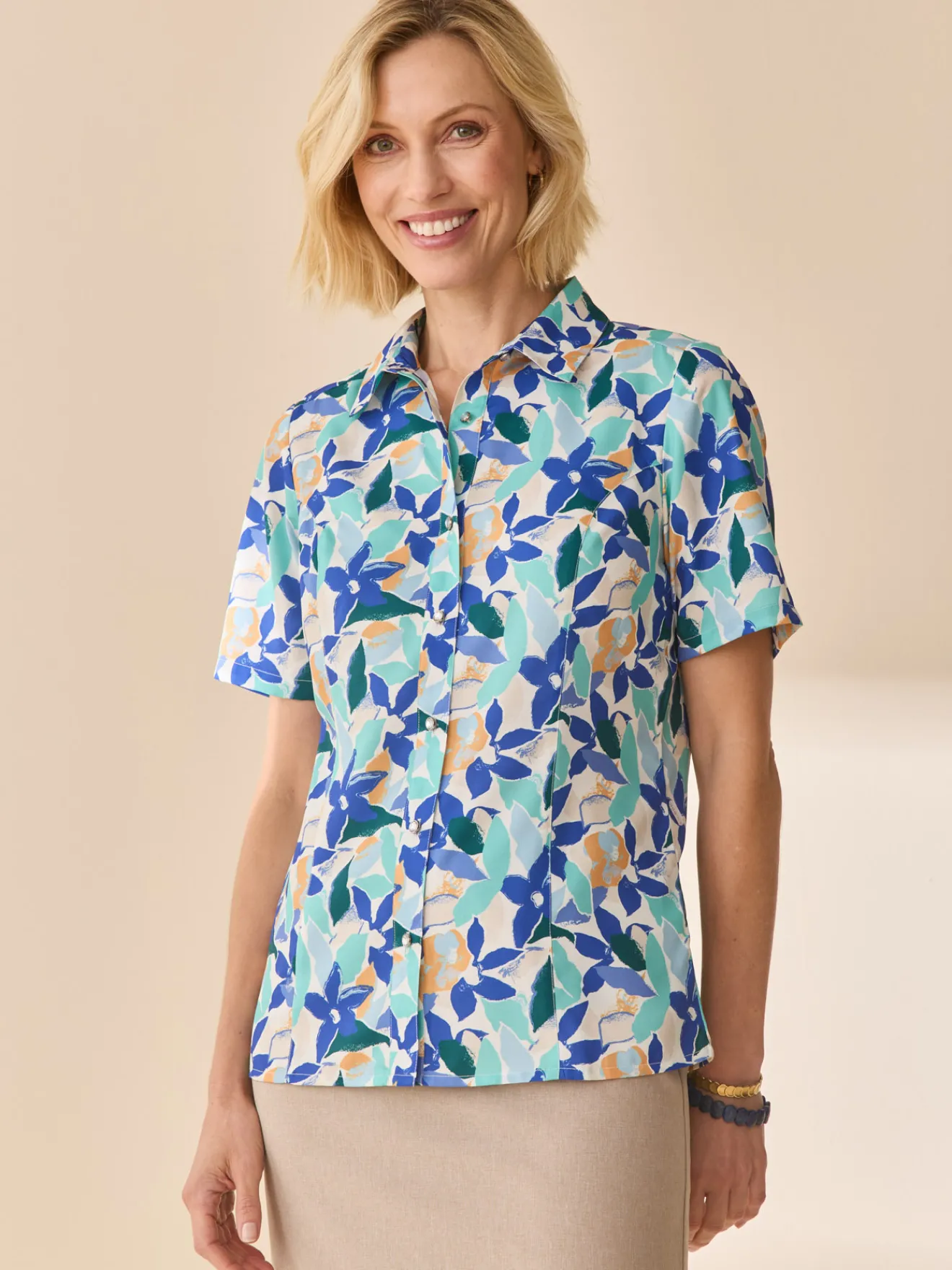 Un petit chemisier manches courtes à la coupe classique et à l’imprimé très stylé. Son tissu fluide en fait une petite pièce du dressing facile à entretenir et agréable à porter.