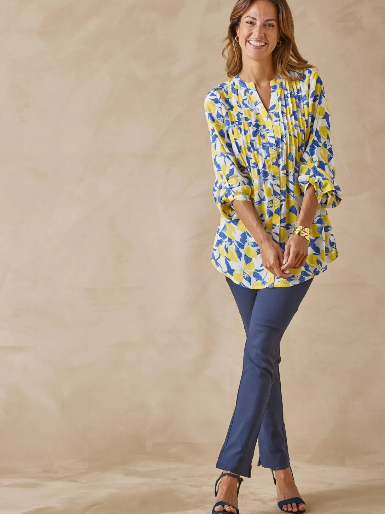 Un chemisier tunique imprimé, à porter ceinturé ou non. Son tissu viscose est agrablement fluide. Un chemisier long à ajouter à la shopping-liste !