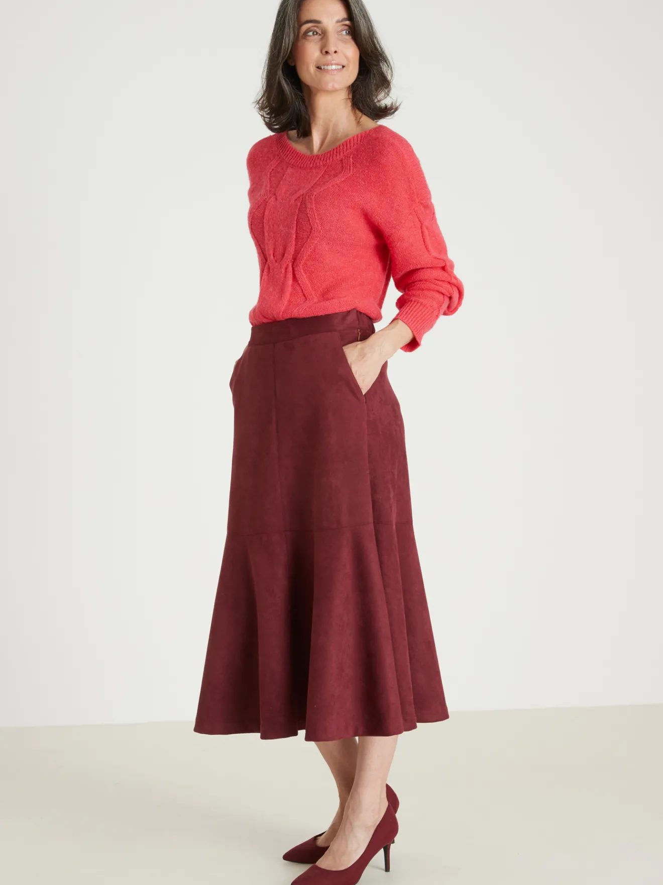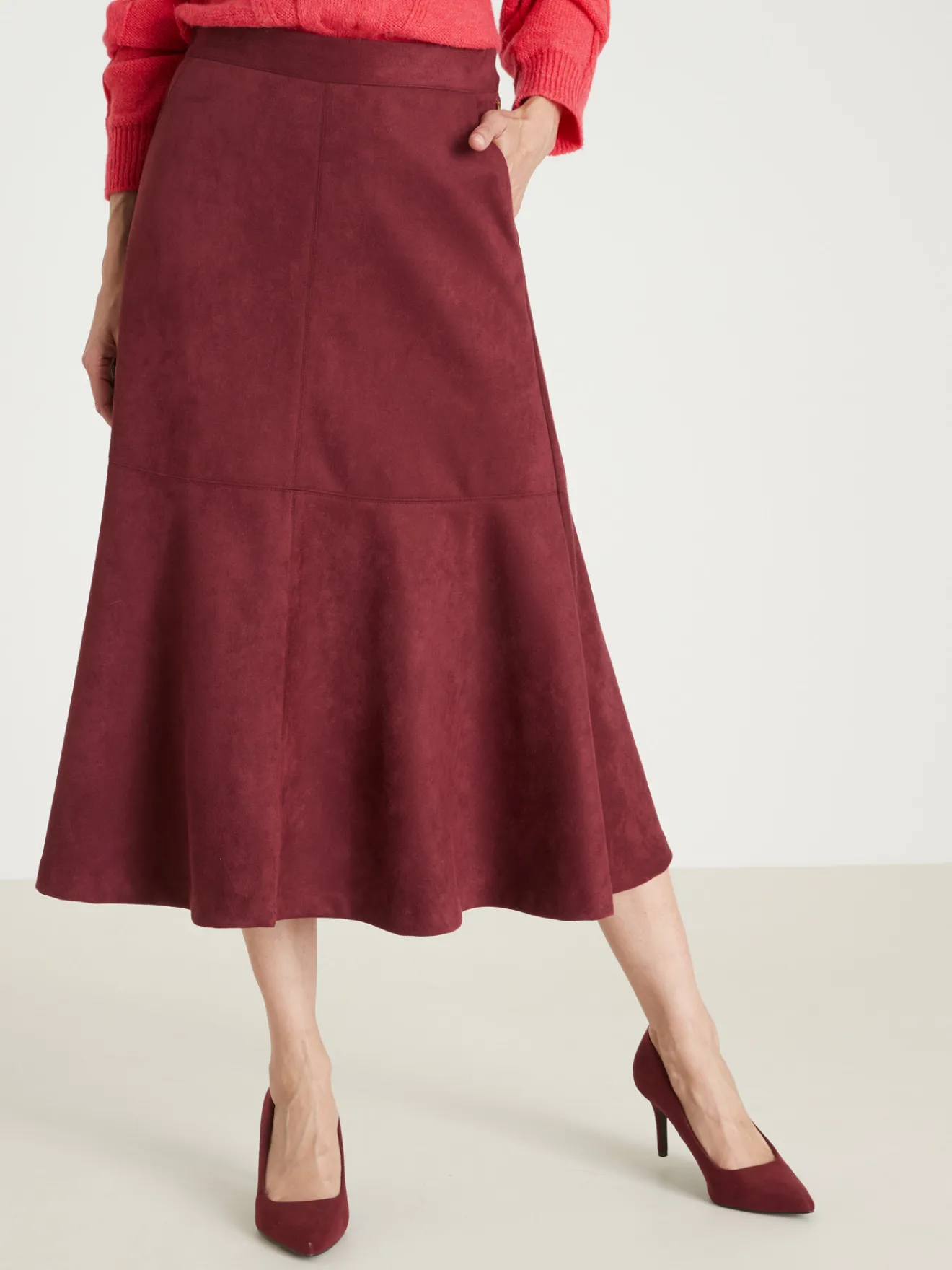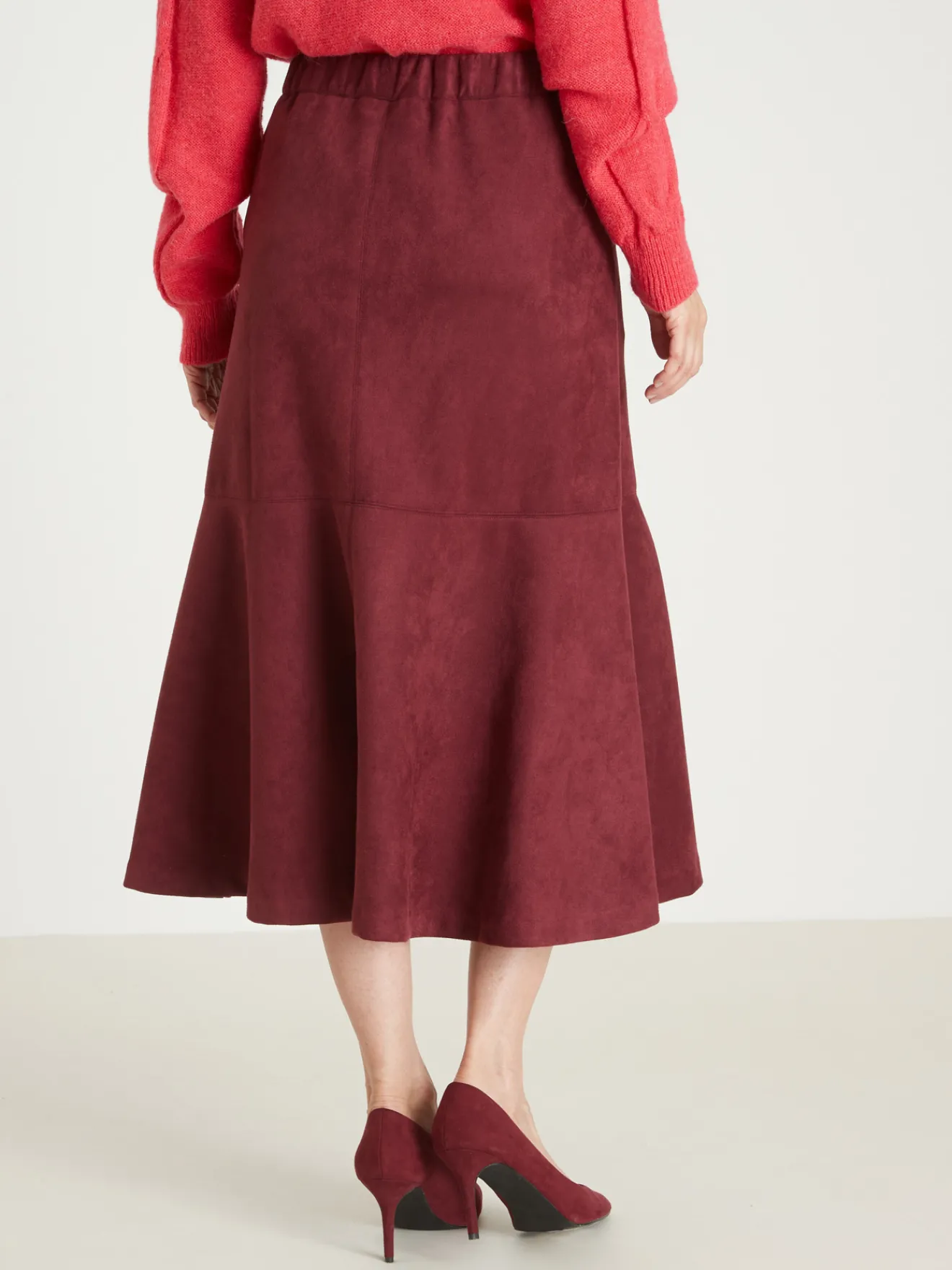 La jupe en suédine a une sacrée allure, surtout avec des bottes ! Et côté confort, elle assure tout autant : sa maille extensible est très agréable à vivre et sa ceinture élastiquée au dos s’ajuste parfaitement à votre taille.