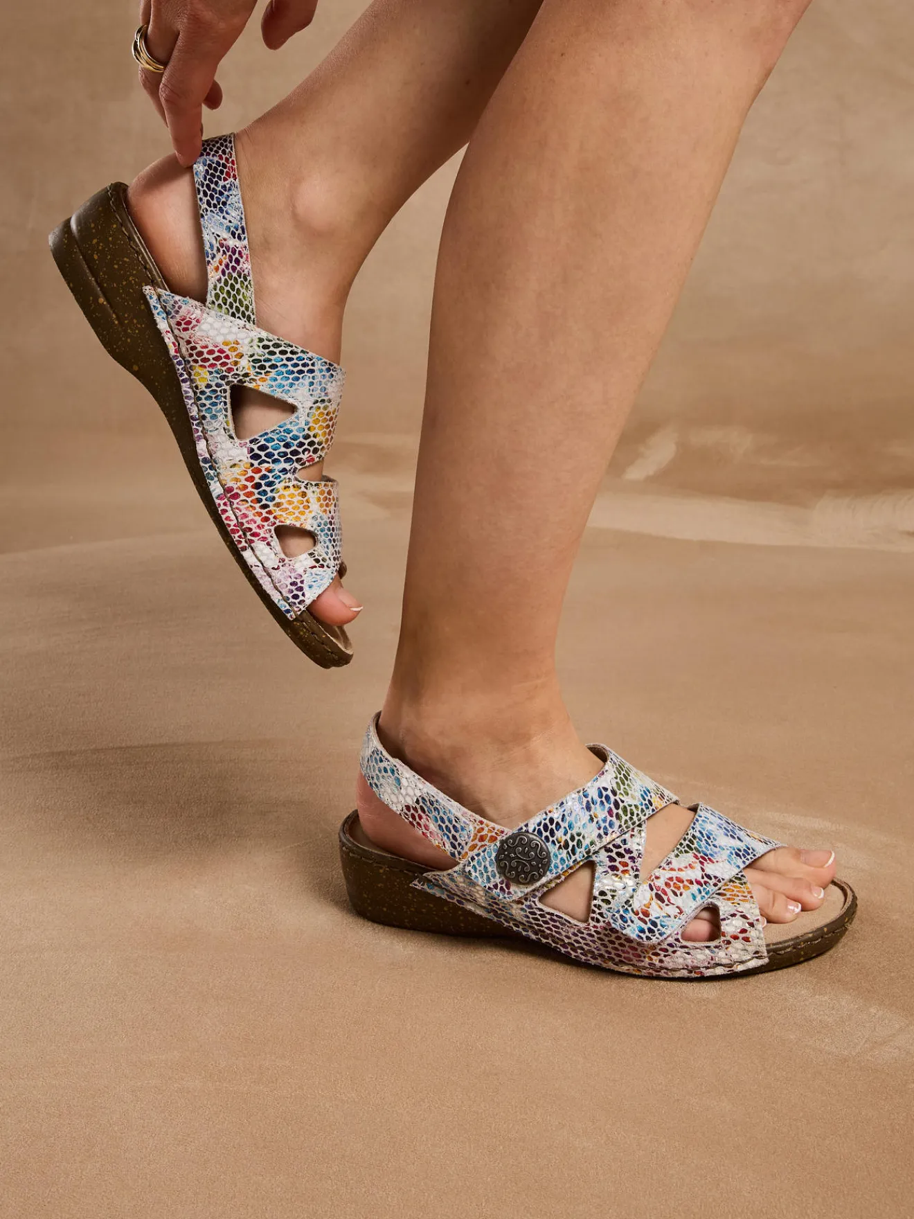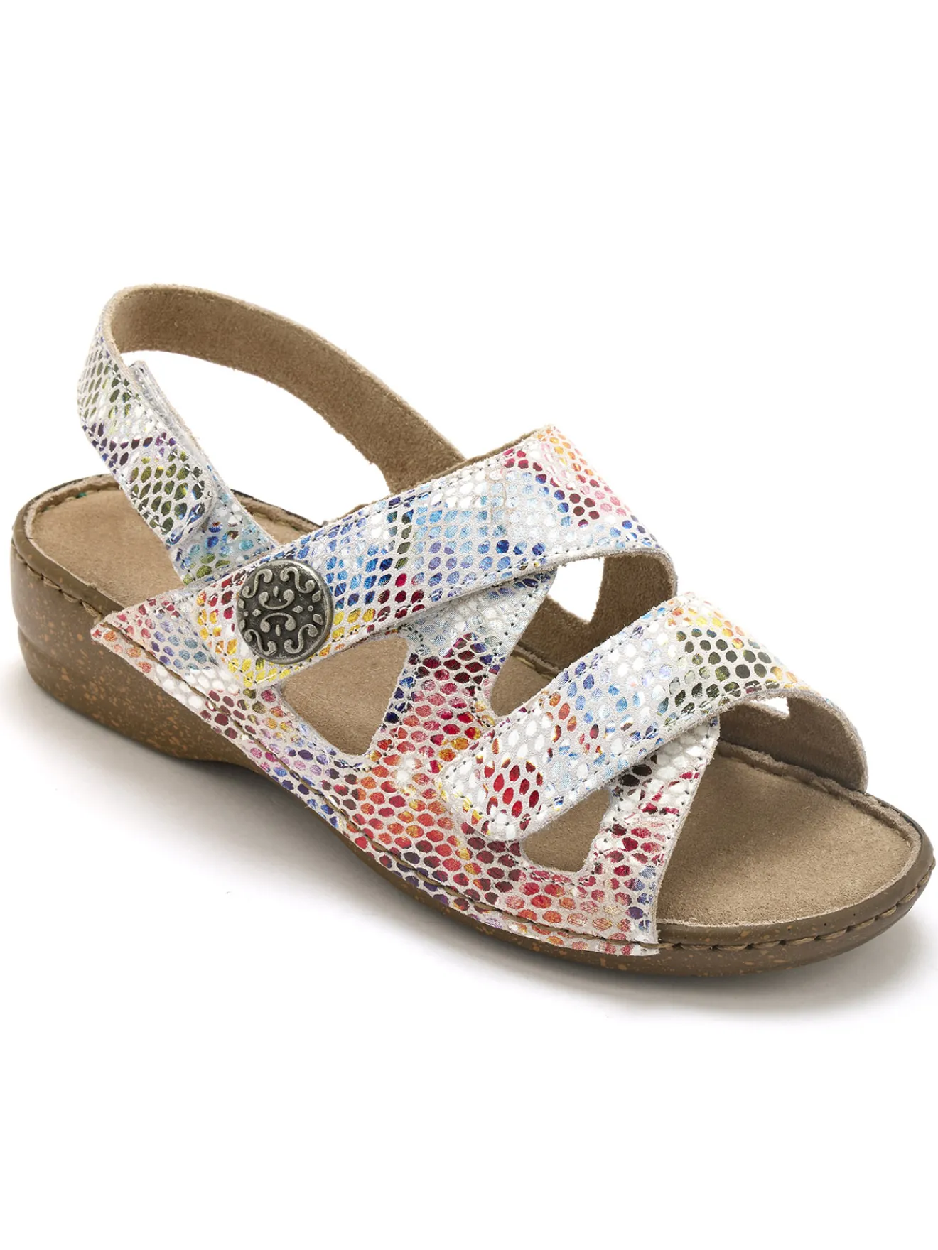 Extra larges, ces sandales à scratch apportent plus de volume intérieur pour les pieds les plus sensibles qui ne sont plus soumis aux compressions douloureuses