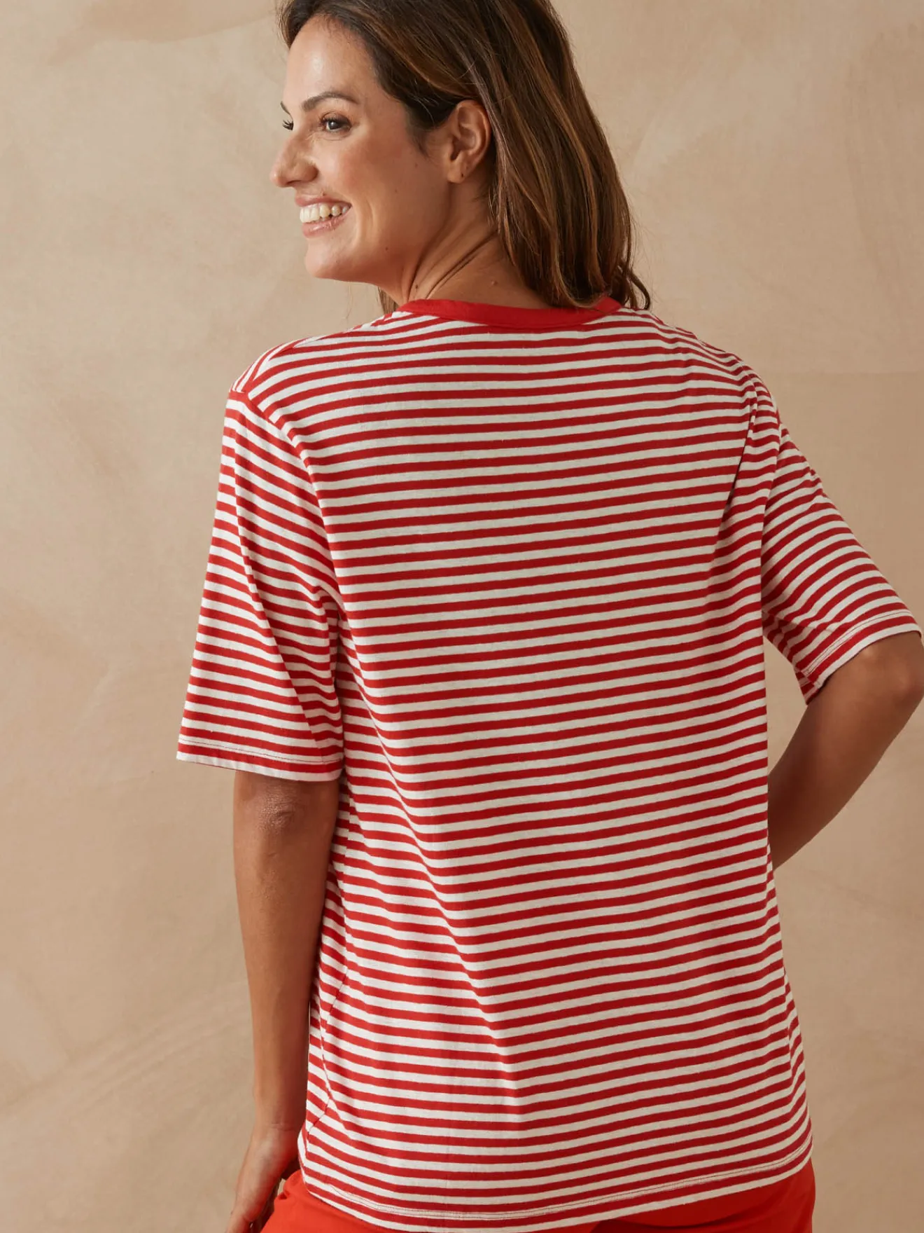 On se sent super à l’aise dans cette marinière à la coupe un peu loose et aux emmanchures légèrement descendues. Et côté style, le chic est au rendez-vous !