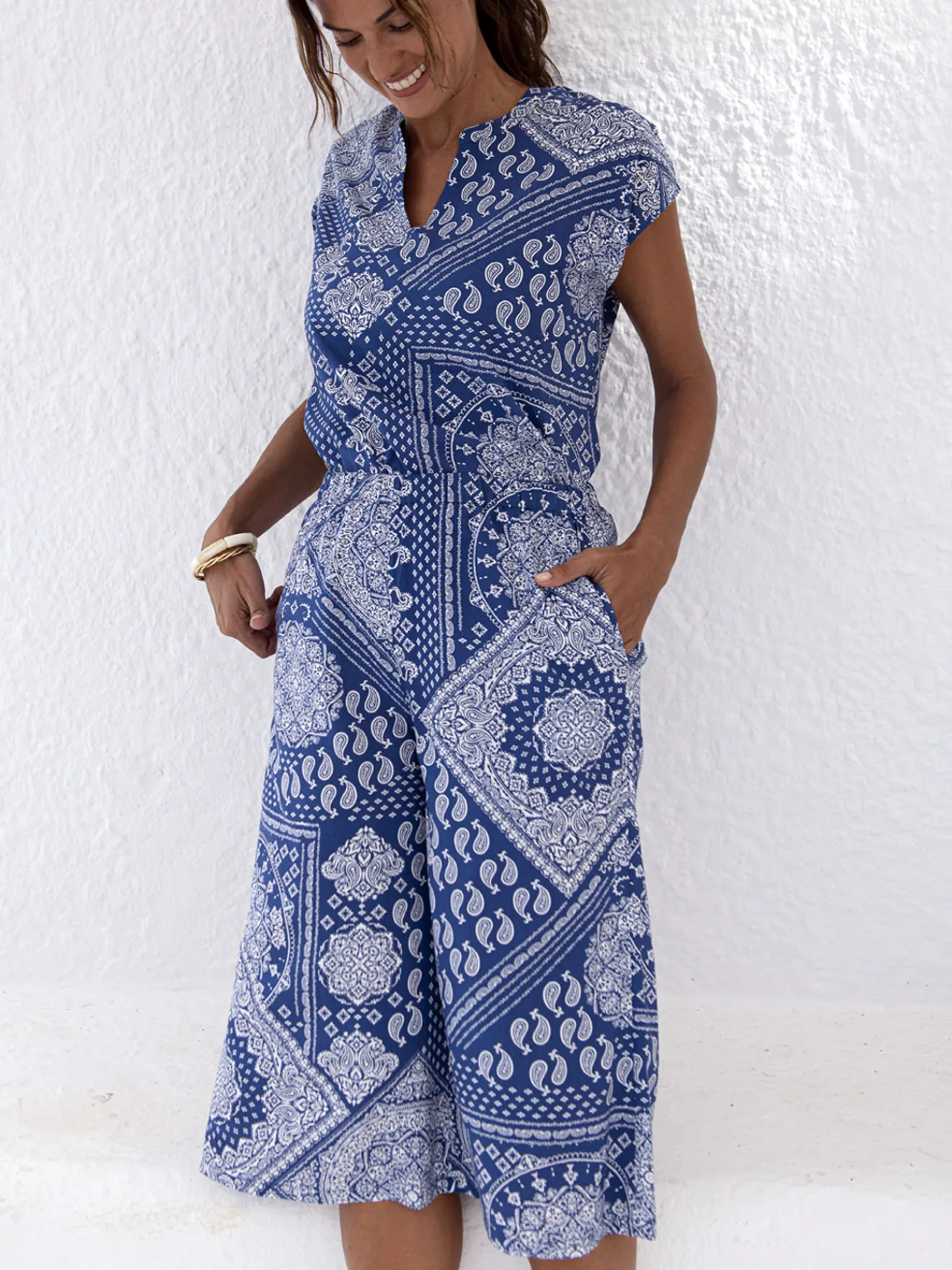 Une jupe-culotte élastiquée pour un été sans contraintes… Vite lavée, vite séchée, ne nécessitant pas de repassage, cette jupe-culotte imprimée se glisse évidemment dans la valise des vacances !