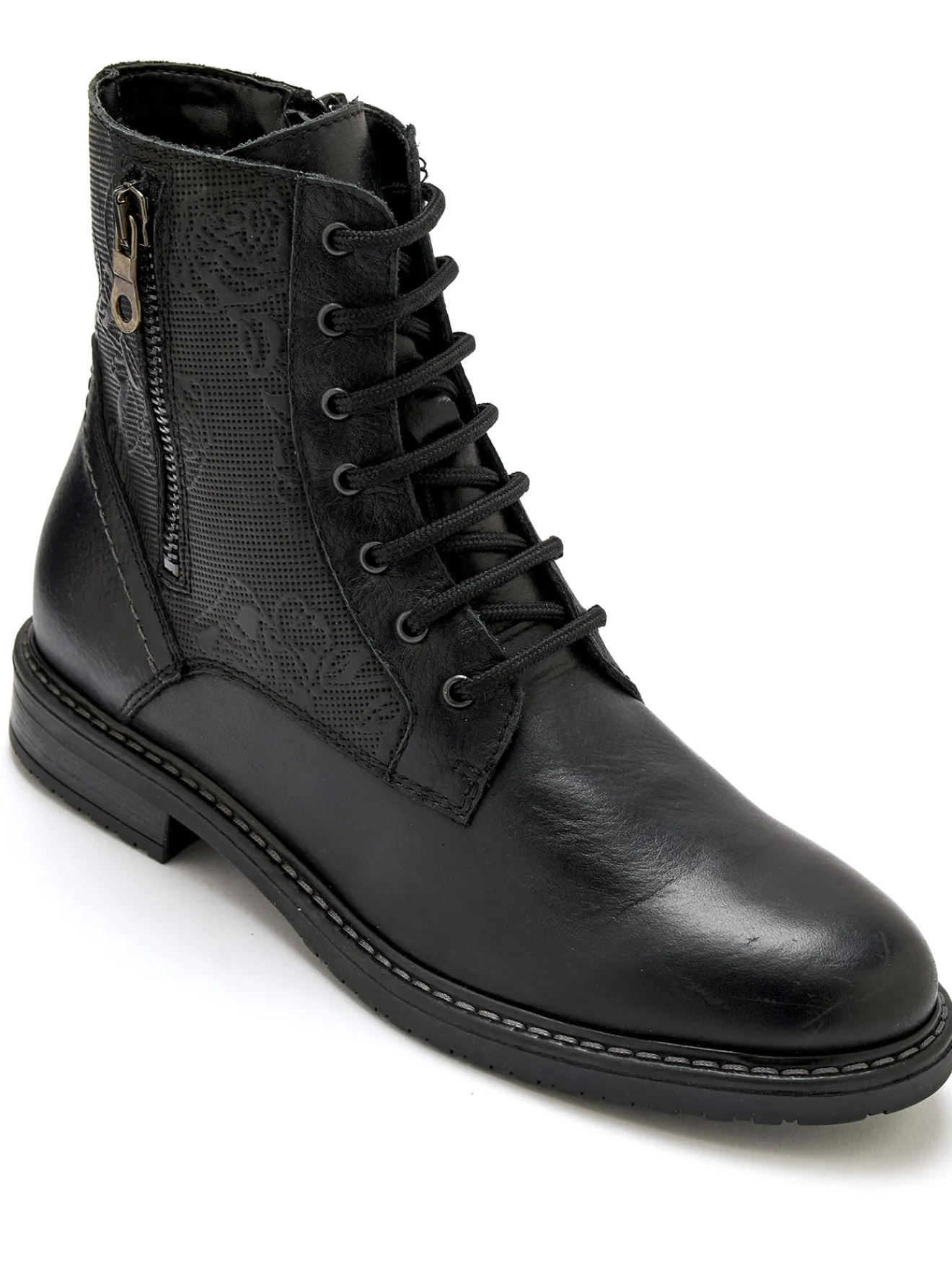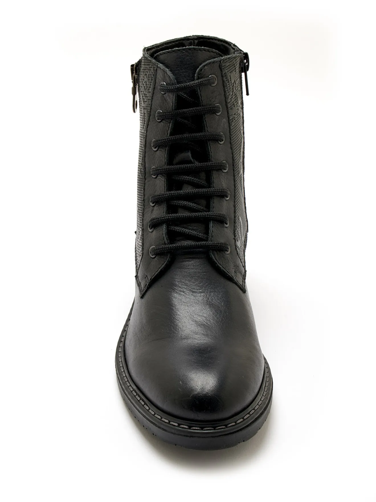 Des bottines tout confort et très stylées ! Ces bottines noires sont munies d’un zip côté pour un enfilage très facile. Les lacets permettent de bien adapter la chaussure au pied.