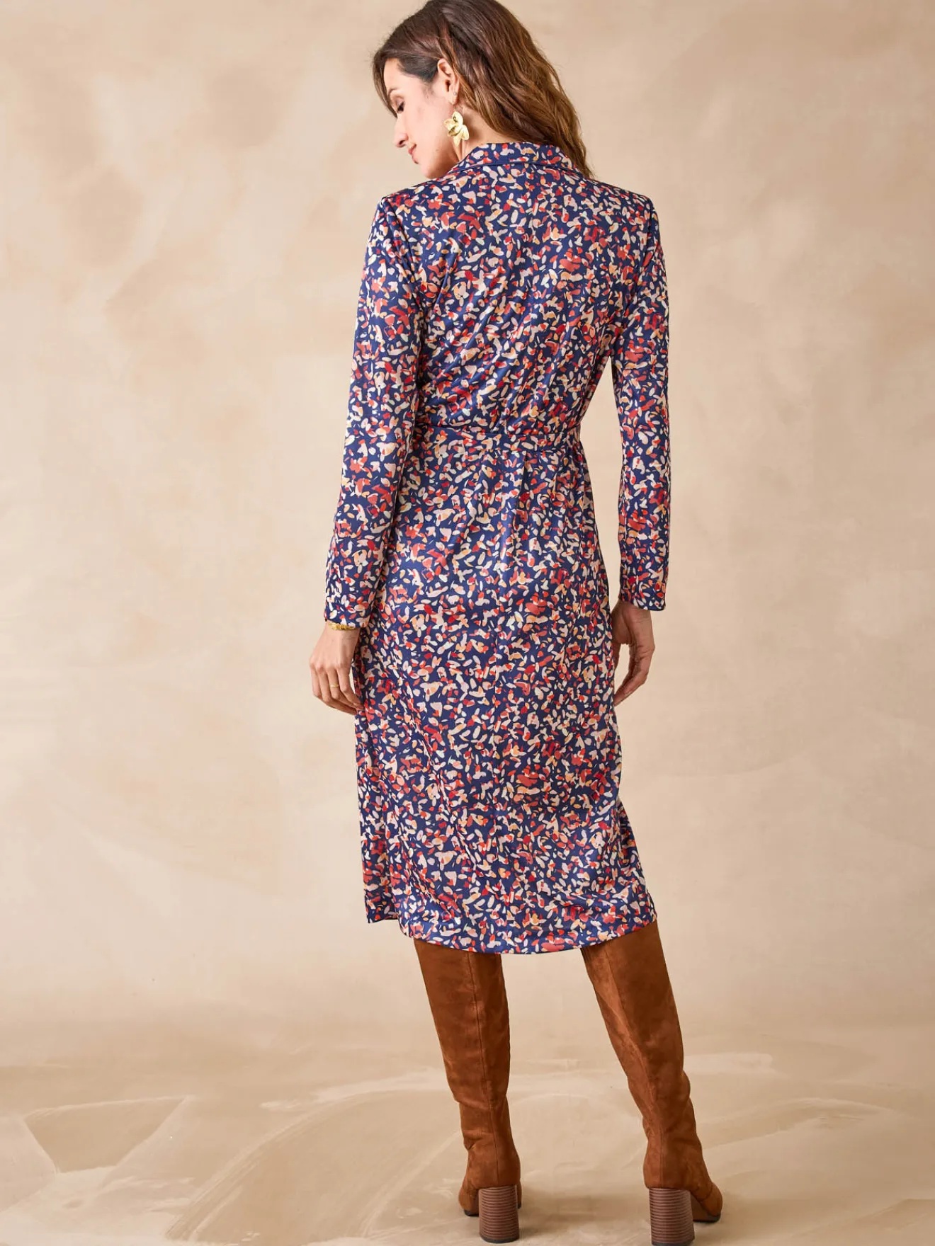 Même en hiver, on porte avec plaisir une robe car celle-ci est en maille chaude. Sa coupe élégante, son imprimé bleu et ses finitions impeccables en font une jolie pièce de la garde-robe.