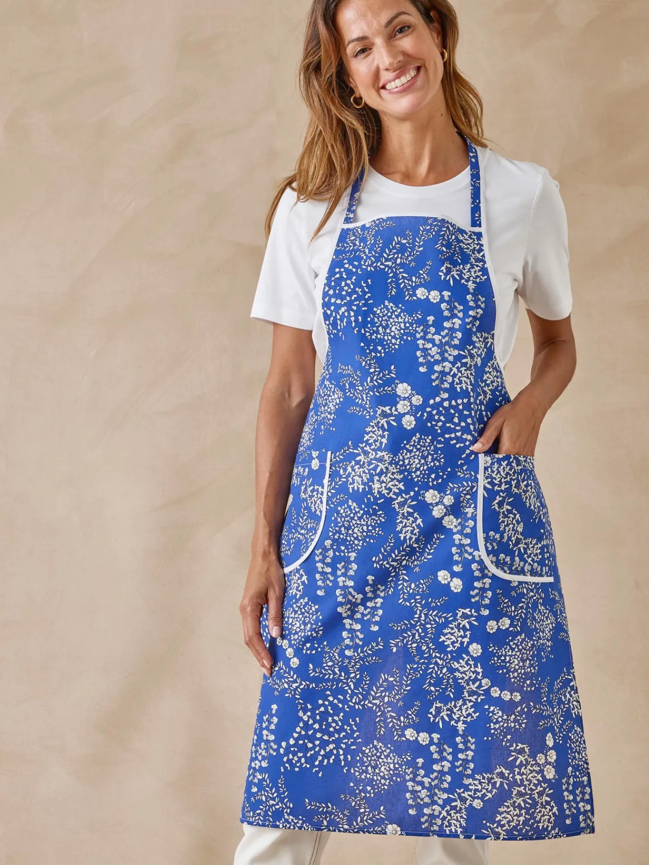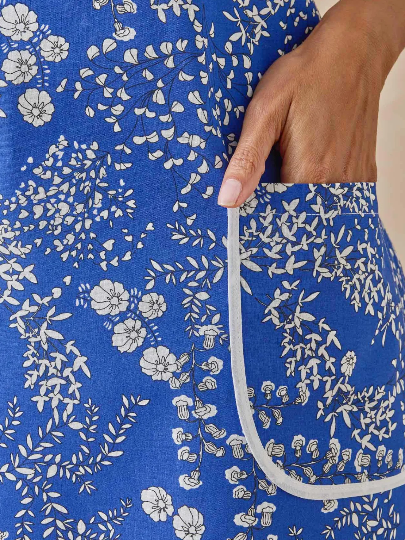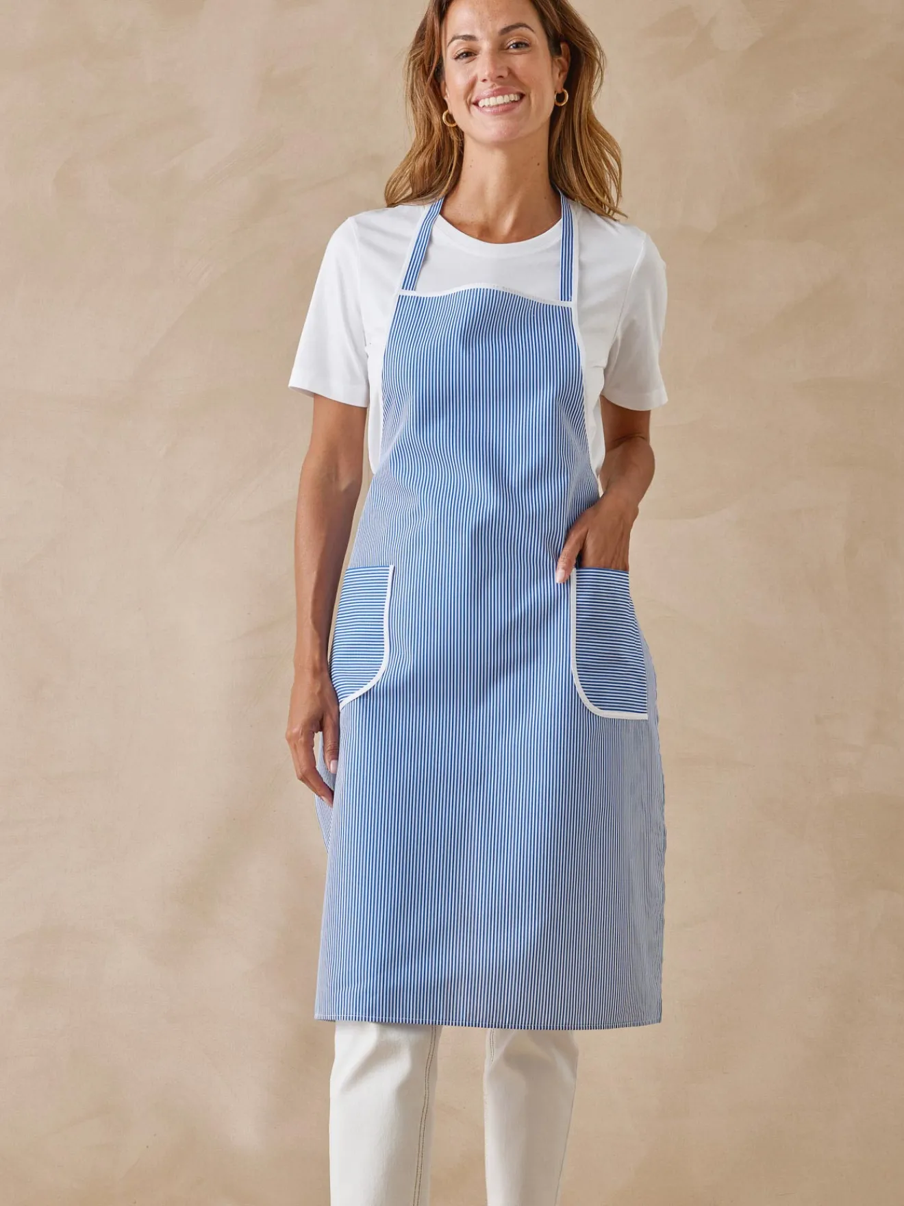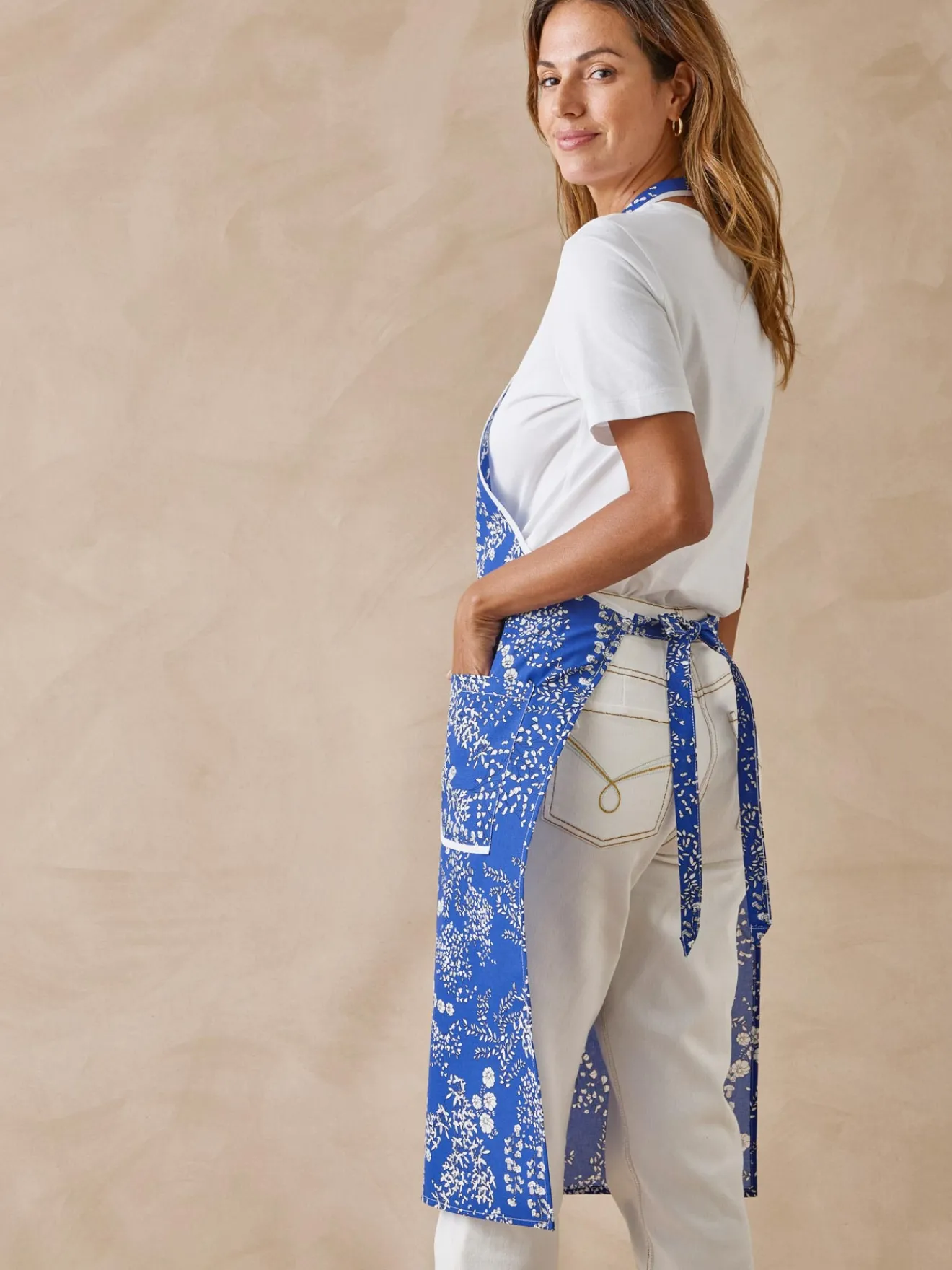 2 poches plaquées avec biais. A nouer au dos.