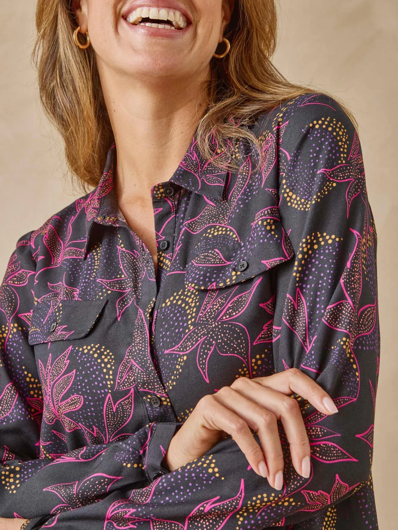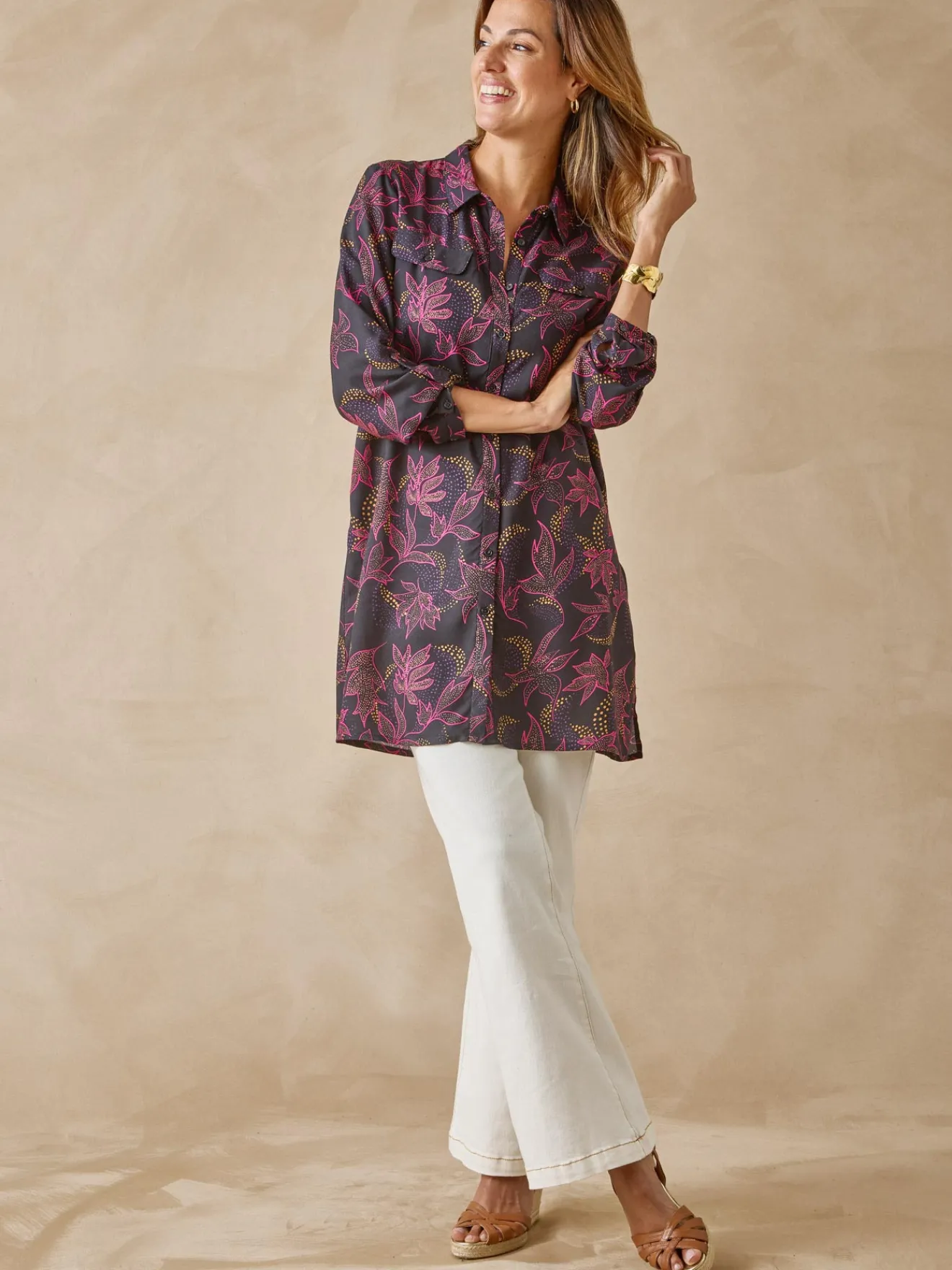 Une belle longueur et des fentes côtés qui vous permettent de porter ce chemisier tunique imprimé sur un jean slim ou un legging pour composer une tenue actuelle et facile à vivre.