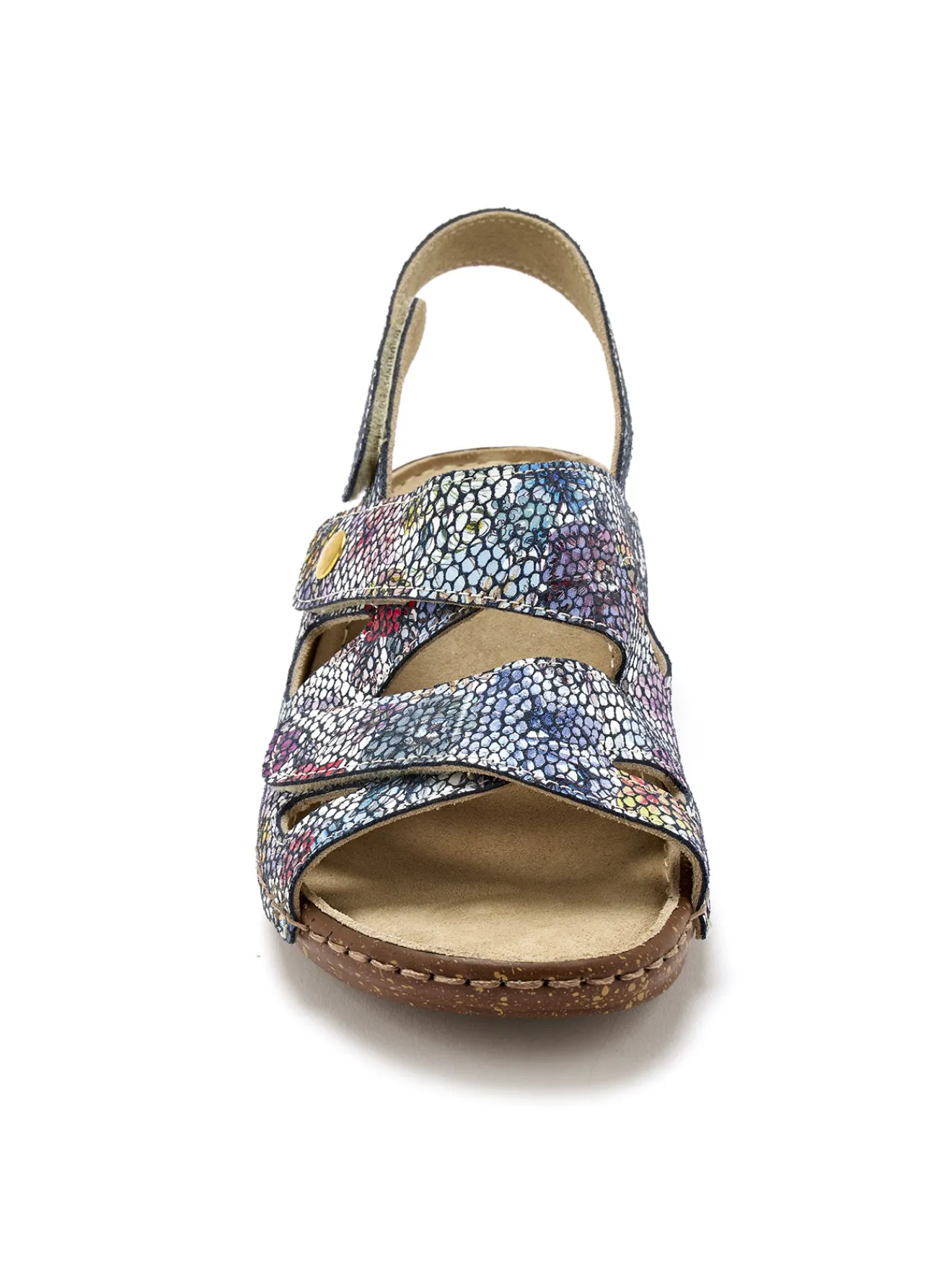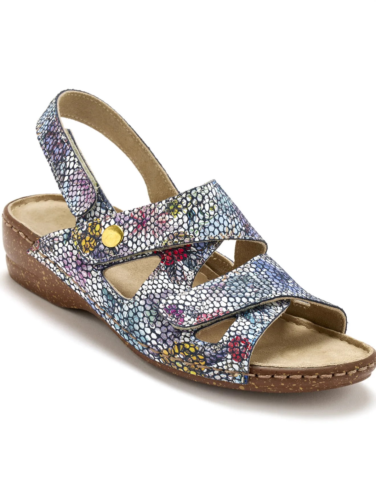 Extra larges, ces sandales à scratch apportent plus de volume intérieur pour les pieds les plus sensibles qui ne sont plus soumis aux compressions douloureuses