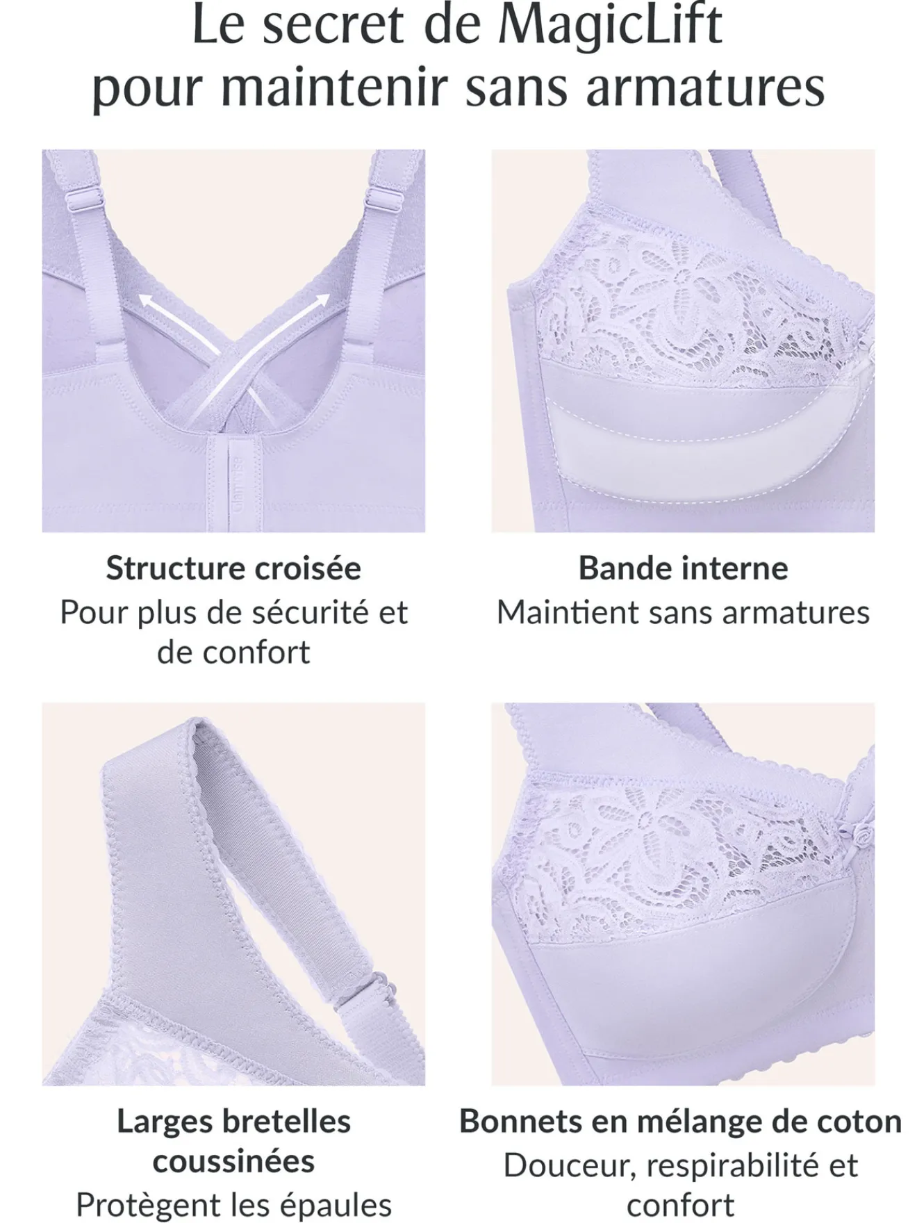 La conception MagicLift propose une bande coussinée qui rehausse, galbe et maintient votre poitrine pour un effet sublime. Les bretelles coussinées et la dentelle élégante apportent la touche finale à ce magnifique modèle, le tout sans armatures. Special grand maintien et parfait pour les grande tailles.