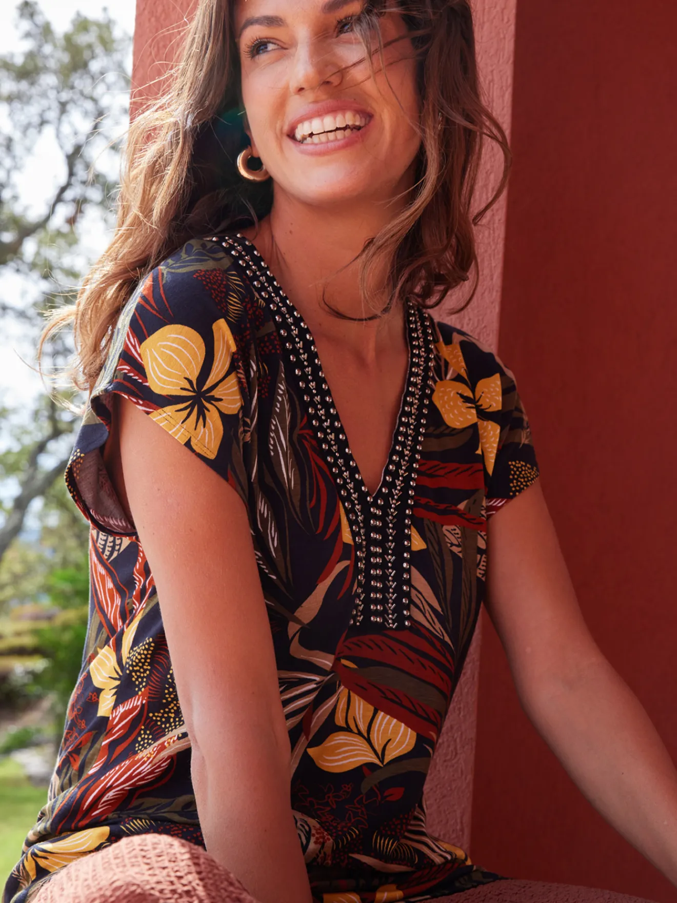 Ce T-shirt imprimé femme est conçu pour s’adapter à toutes les morpholgies : petites et grandes tailles.