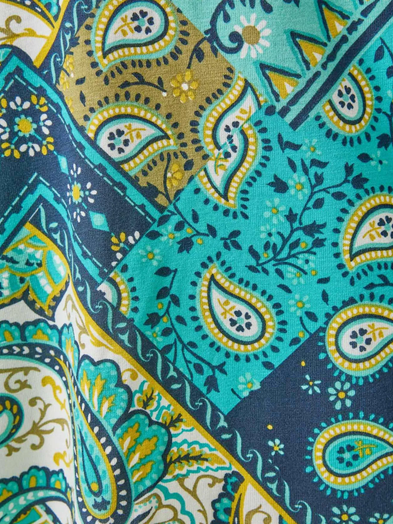Tunique imprimée en maille extensible 95% viscose, 5% élasthanne.