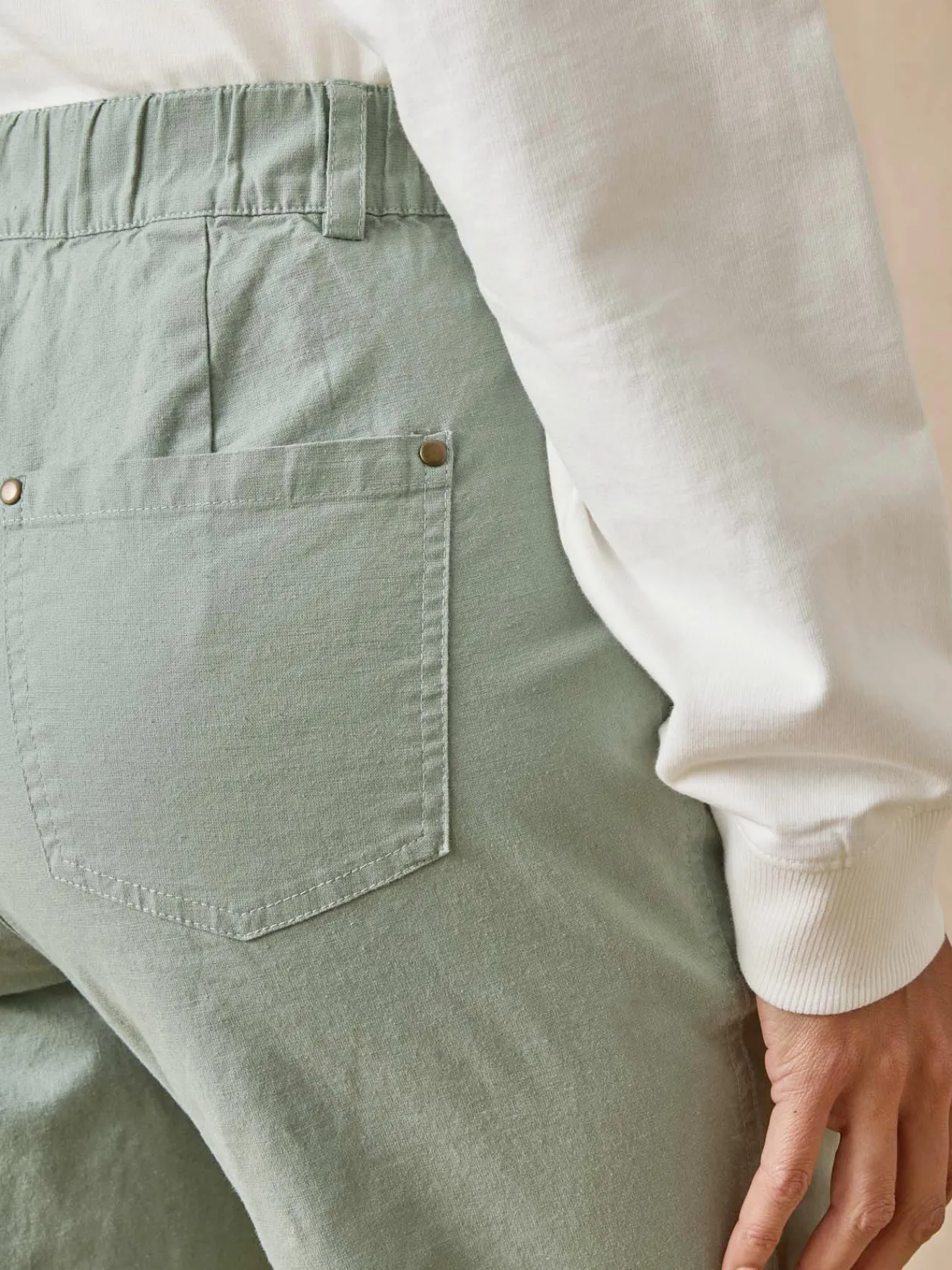 Un peu de lin rend ce pantalon particulièrement agréable à porter. On aime sa coupe cargo, avec ses grandes poches… très tendance !