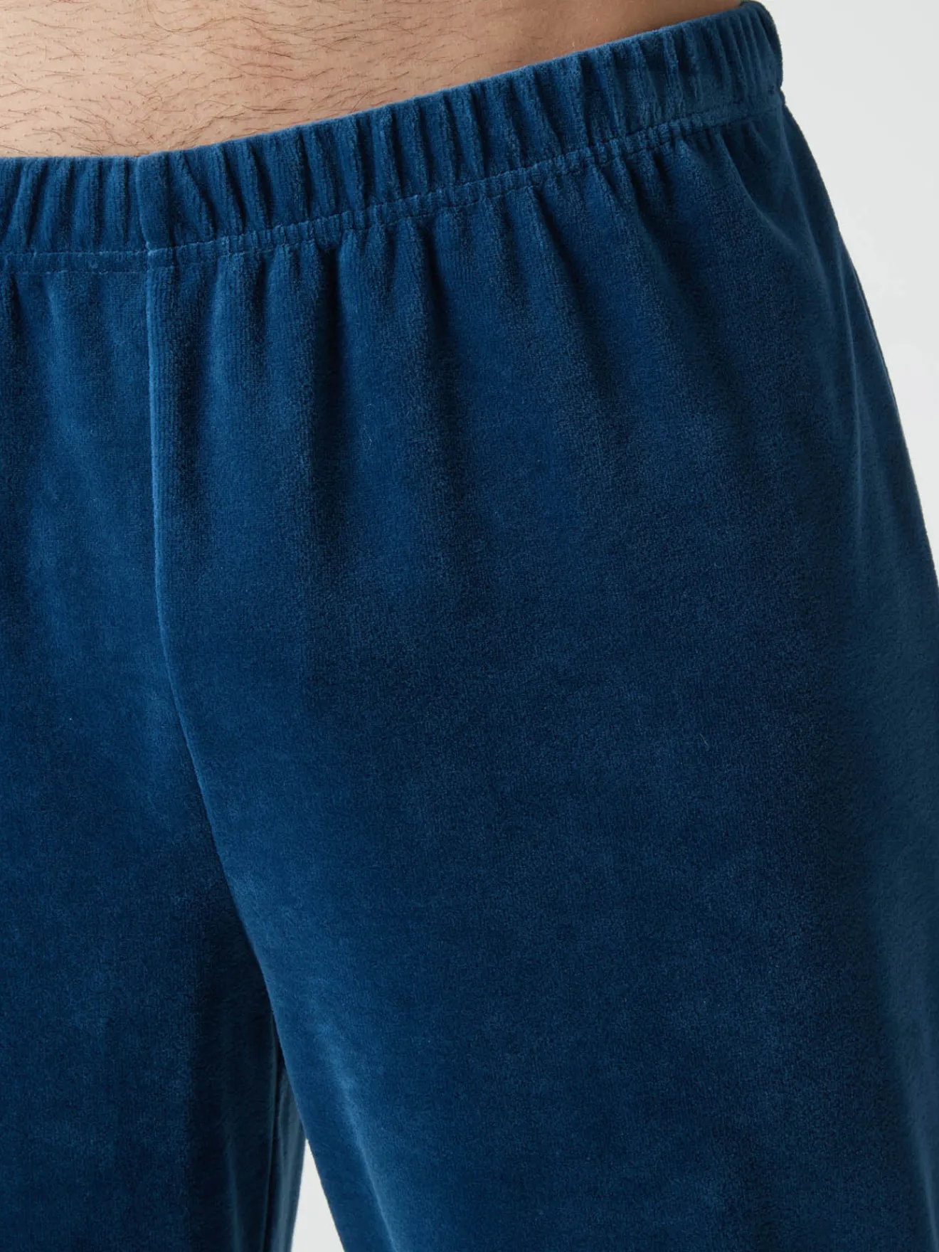 Le pantalon de pyjama uni : forme jogging. Taille élastiquée sous tunnel. Double bord-côtes au bas des jambes. Entrejambe 75 cm environ.