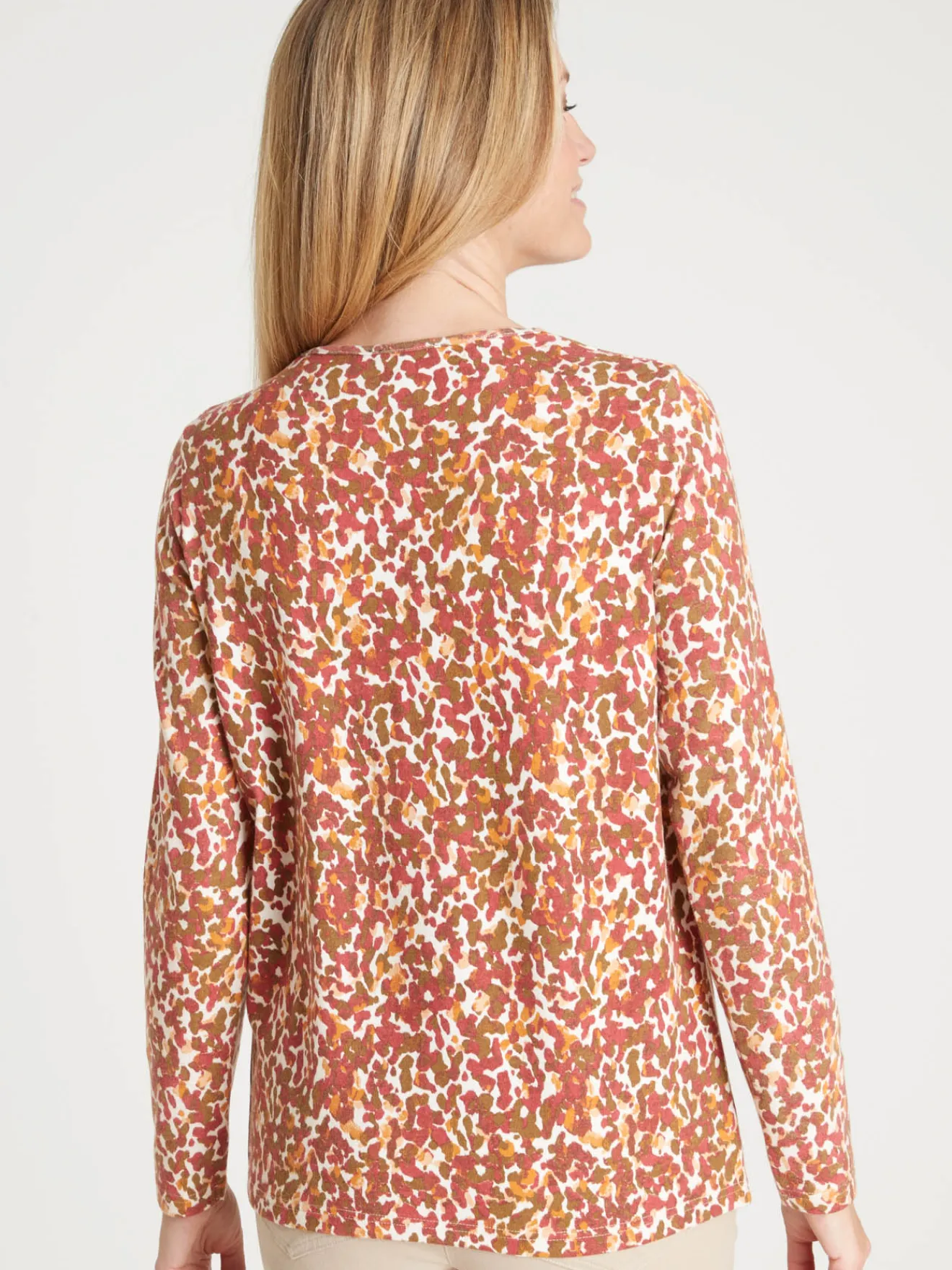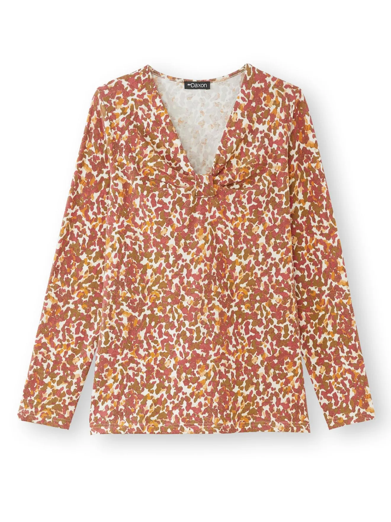 Un effet noeud crée un joli drapé à l’encolure de ce T-shirt manches longues. Un détail élégant et chic. Vous apprécierez beaucoup aussi sa maille douce et extensible qui rend ce T-shirt imprimé très agréable à porter.