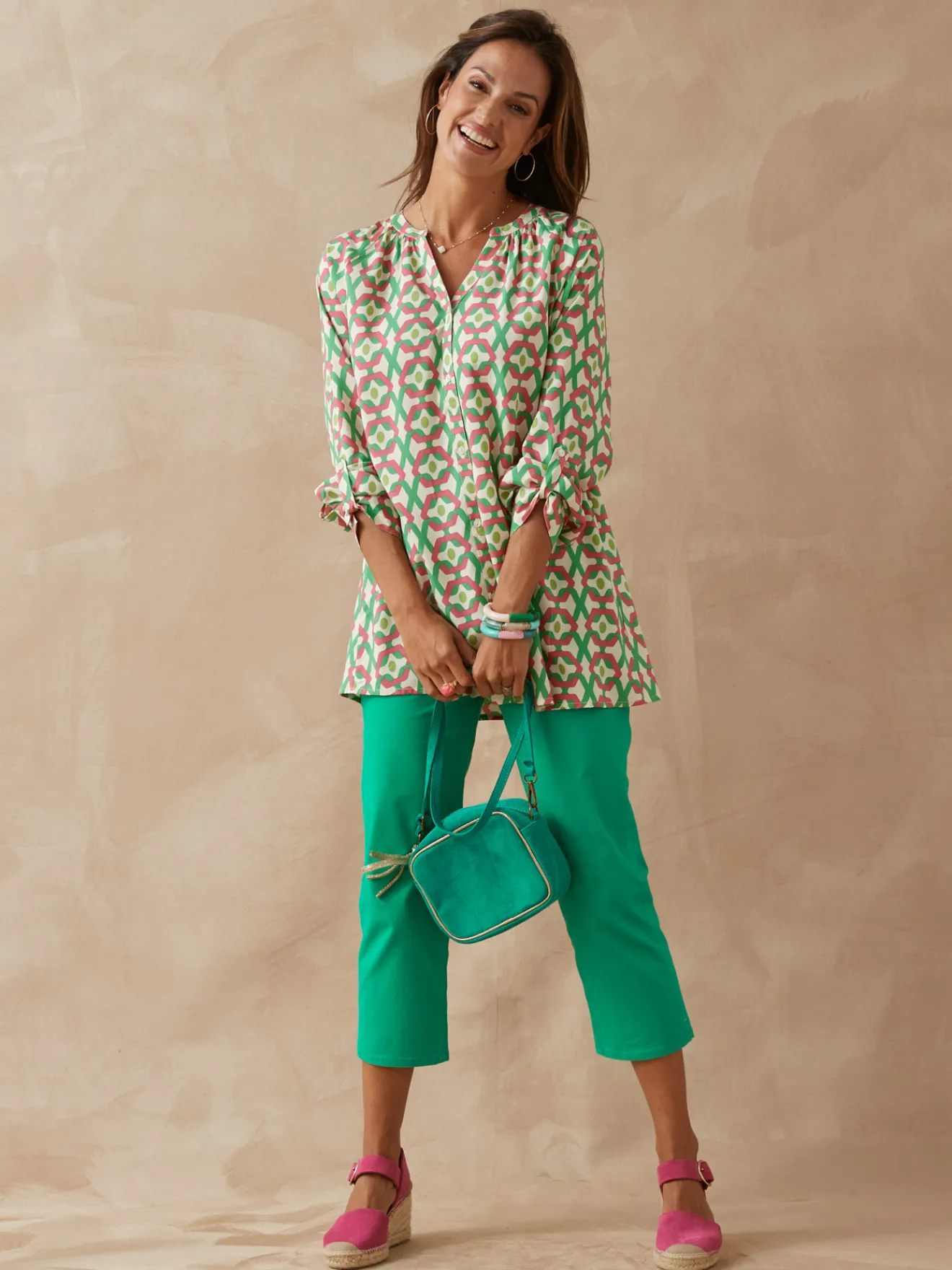 Une coupe ample confortable pour cette tunique boutonnée qui se porte facilement sur un tregging ou un slim pour un look actuel. Son imprimé met du pep’s dans la saison… on se laisse tenter !