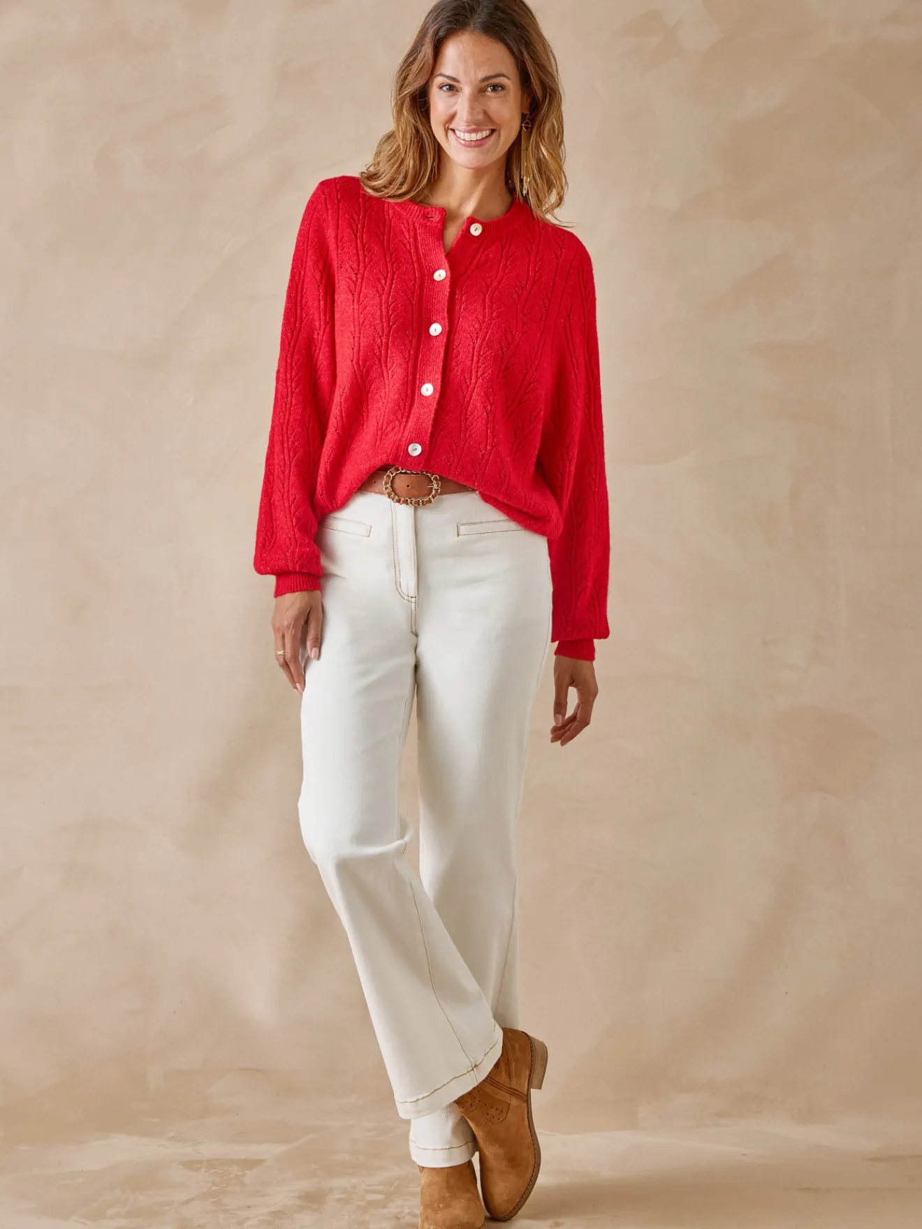 Une forme boîte actuelle pour ce cardigan, pièce phare du dressing, quelle que soit la saison. On aime le point ajouré de ce modèle qui fait tout son charme…