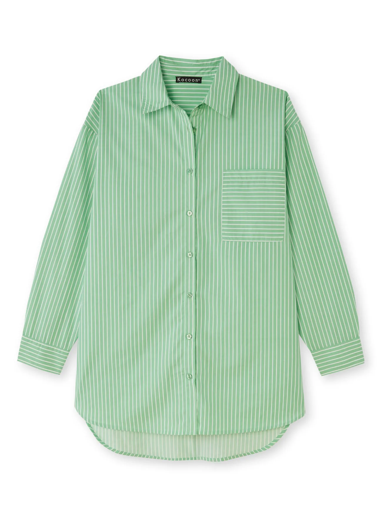 Notre styliste a choisi pour ce chemisier long un tissu rayé ou uni blanc : un effet allongeant pour la silhouette. Un chemisier rayé que vous pourrez également porter ceinturé.