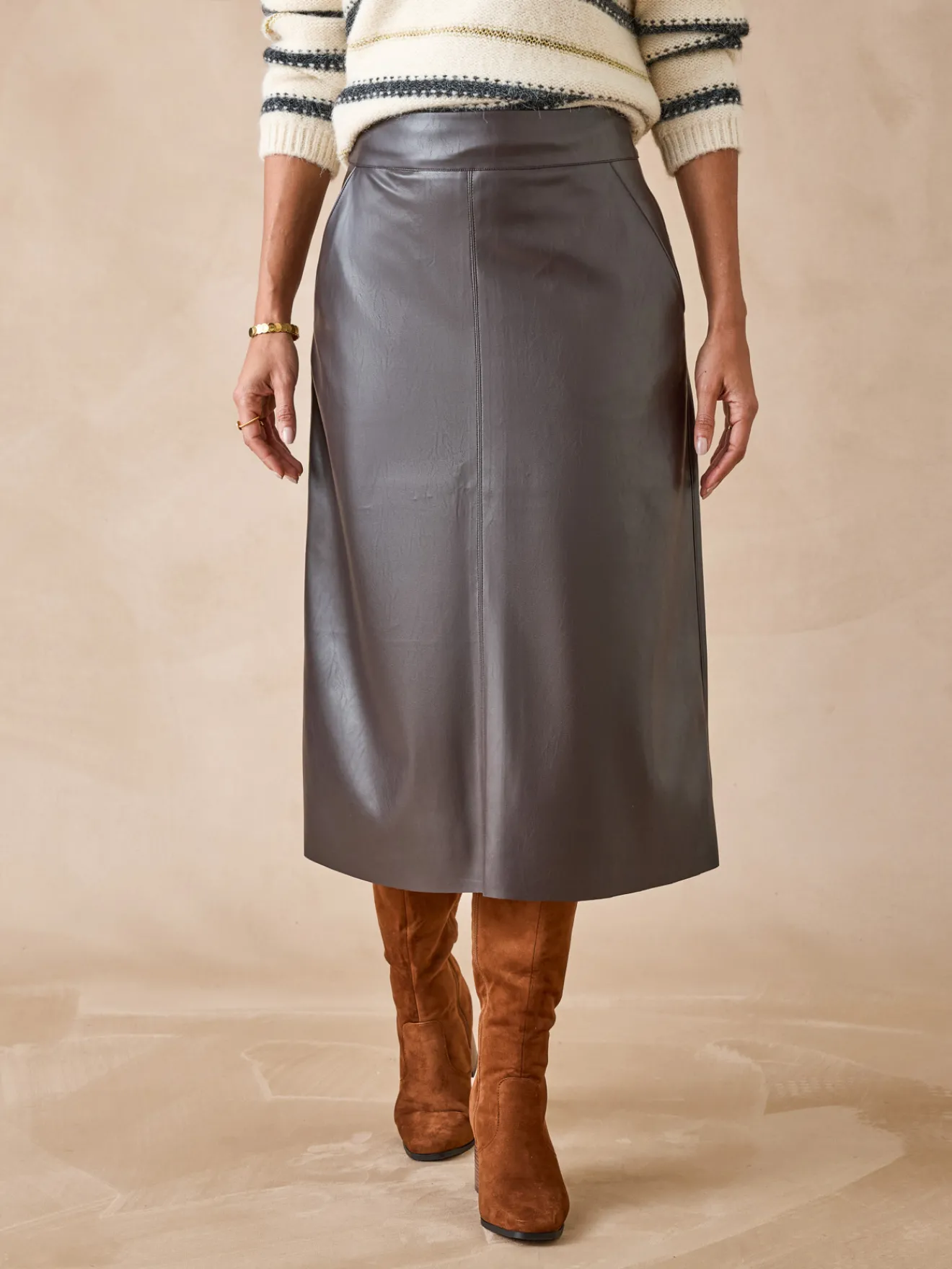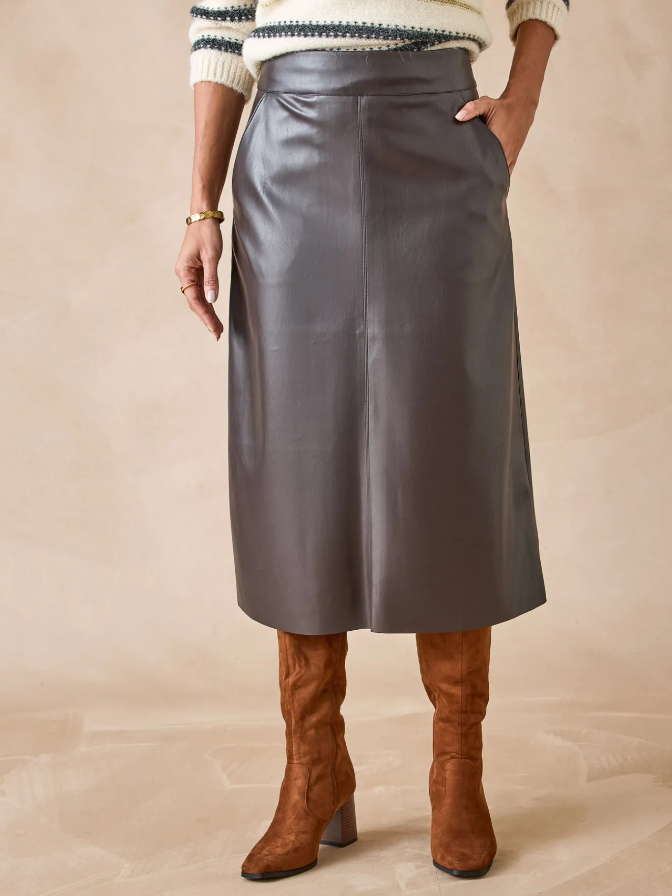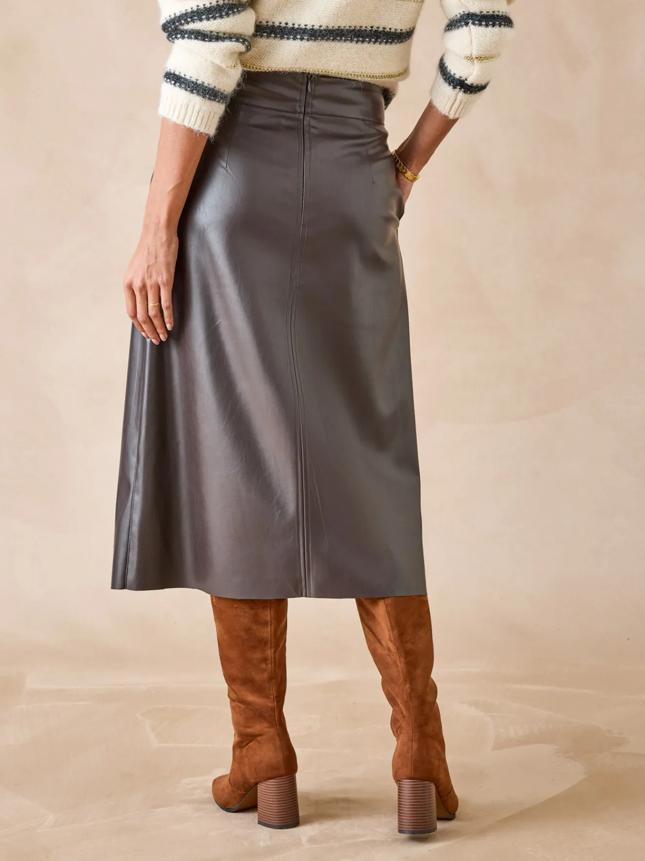 Une imitation cuir qui promet un vrai succès pour cette jupe à panneaux, à la coupe légèrement évasée.