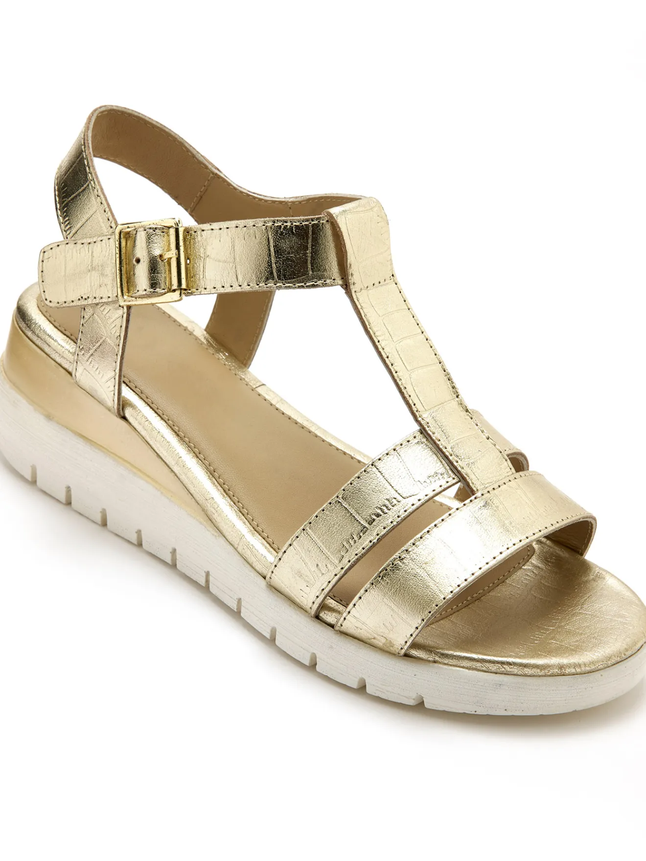 Originales et ultra confort, ces sandales PEDICONFORT® maintiennent parfaitement le pied grâce à une large bride avec patte scratch ajustable sous boucle fantaisie. Une trépointe dorée complète leur style.