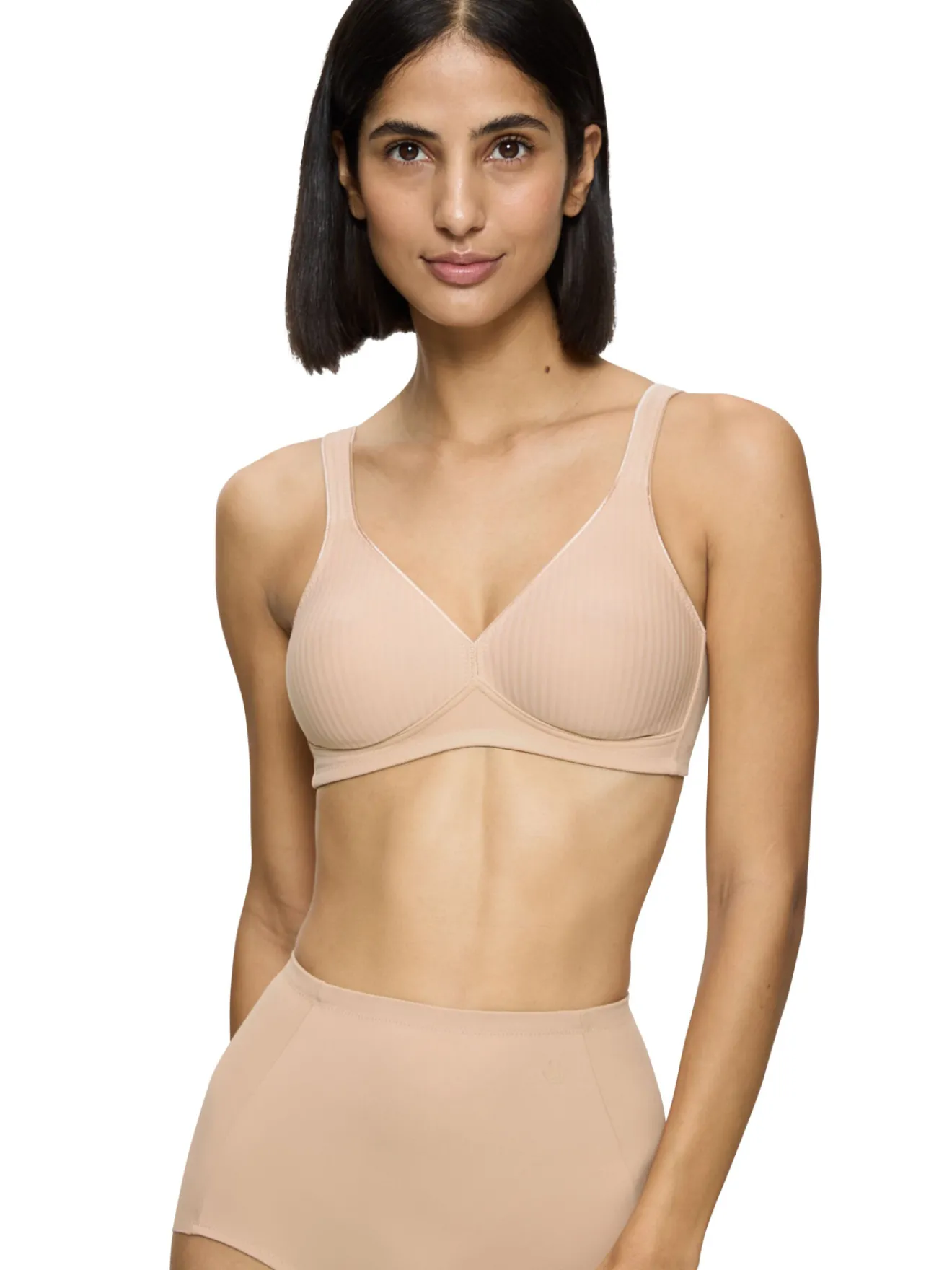 Soutien-gorge sans armatures conçu dans une maille nerveuse composée de coton et de Lycra. L’intérieur des bonnets 1% coton permet un confort incomparable. Les bonnets moulés ainsi que les bretelles larges et doublées de coton apportent douceur et maintien coton. Sculptant fort, bretelles larges, lycra, confort.