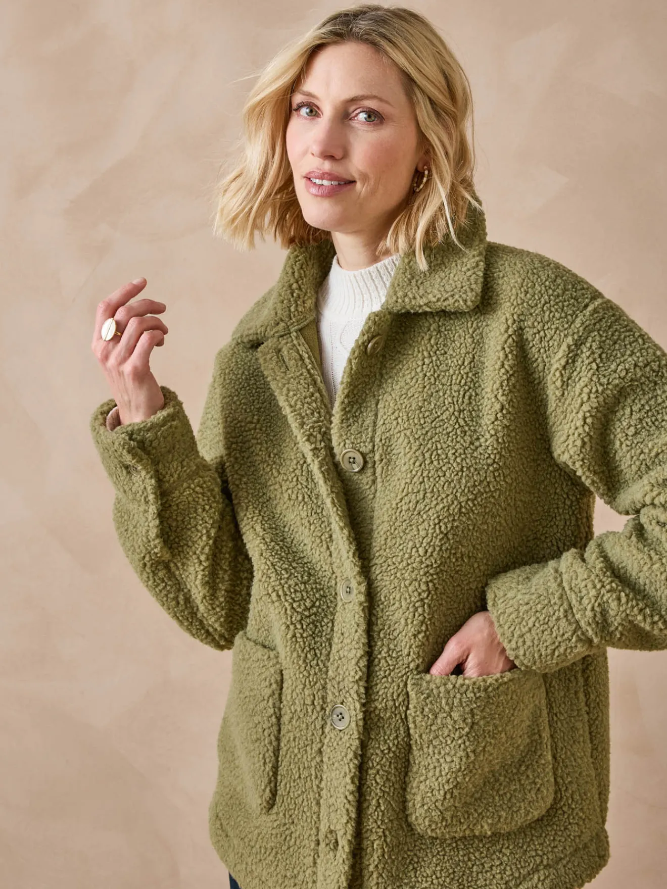 Esprit surchemise très sympa pour cette veste en maille moutonnée. Un vrai cocon chaleur ! Le coloris de cette veste chaude permet de nombreuses associations.