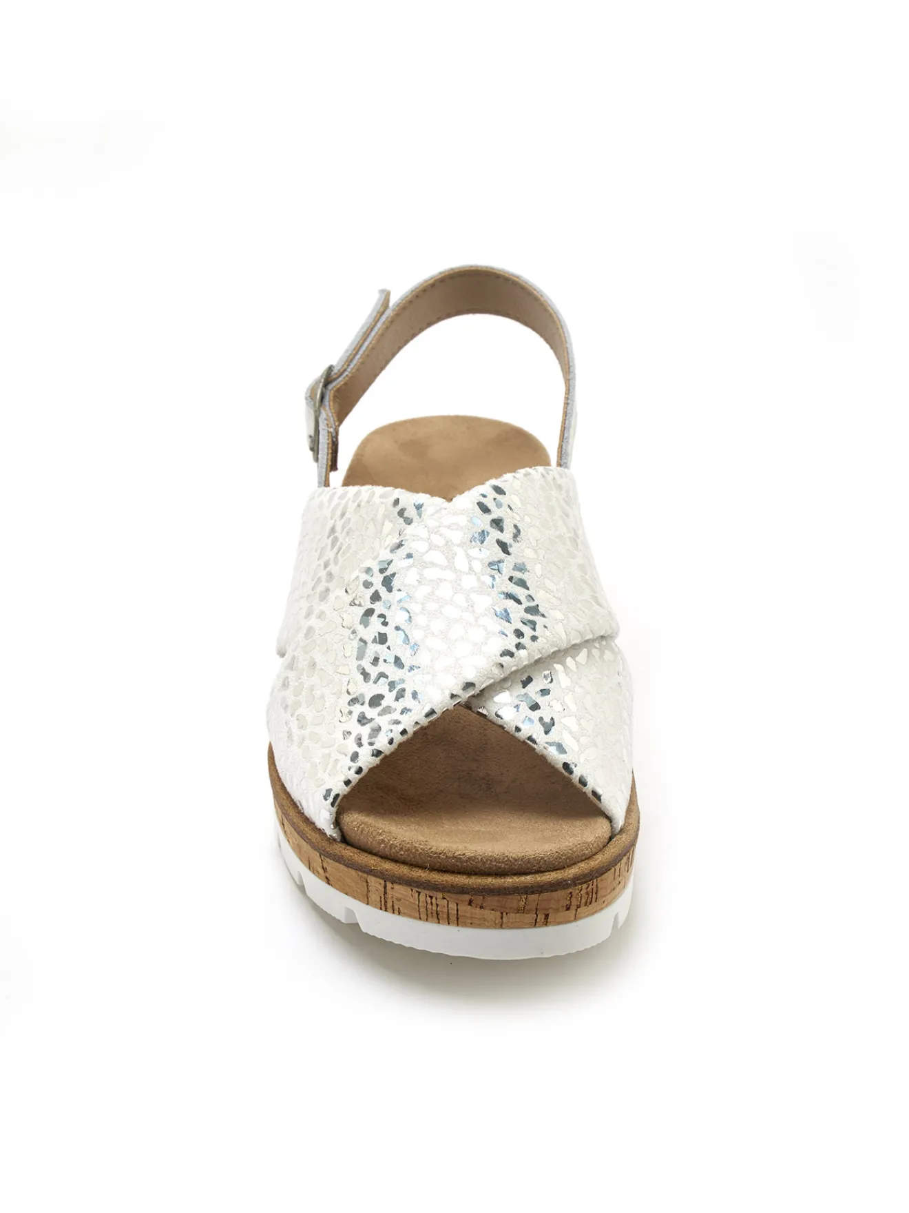 Alliance de confort et de fantaisie pour ces sandales PEDICONFORT®, grâce à leurs lanières croisées très confortables en matière extensible tubulaire, rehaussées de petits motifs brillants.