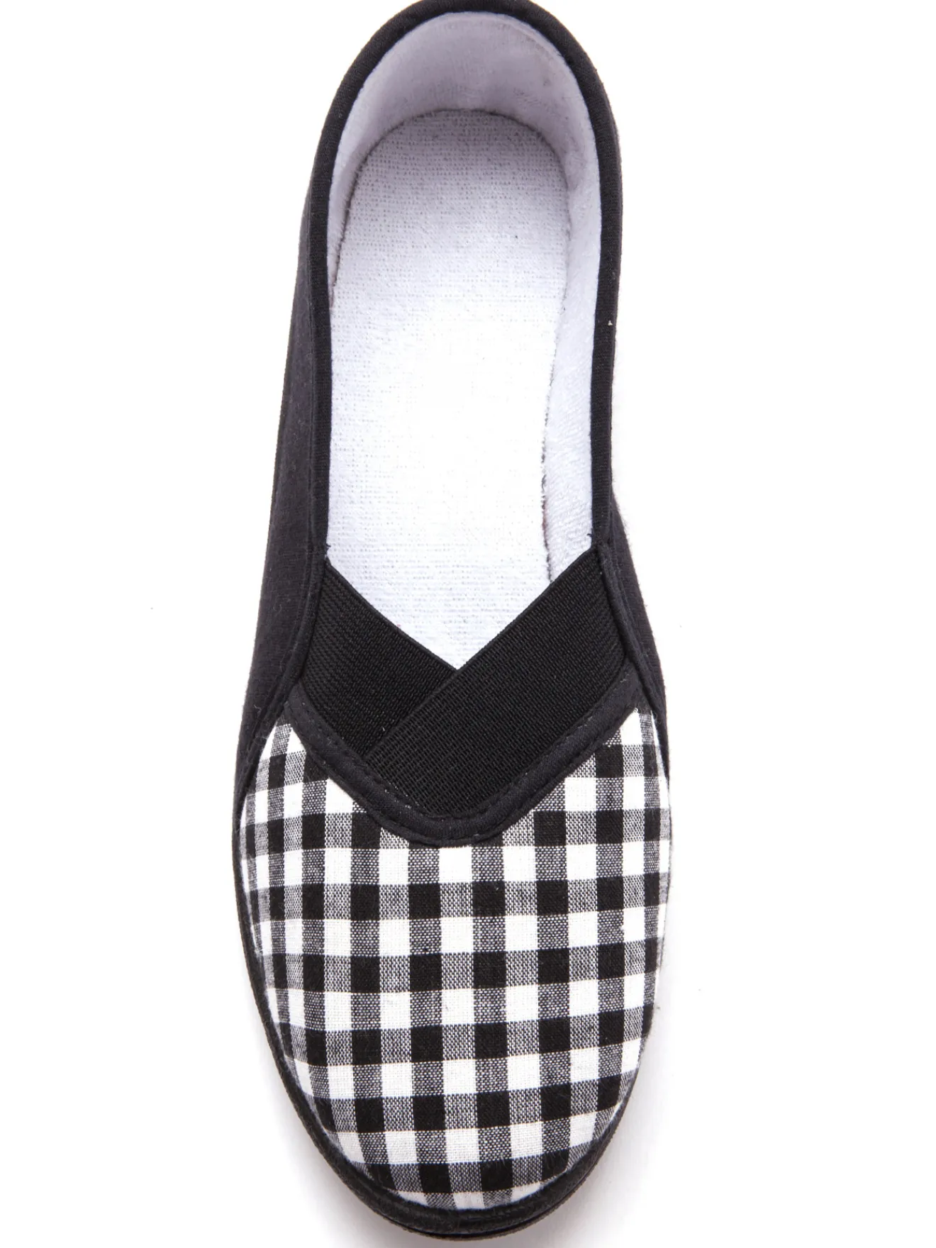– Talon des pantoufles en toile femme : 2,5 cm environ