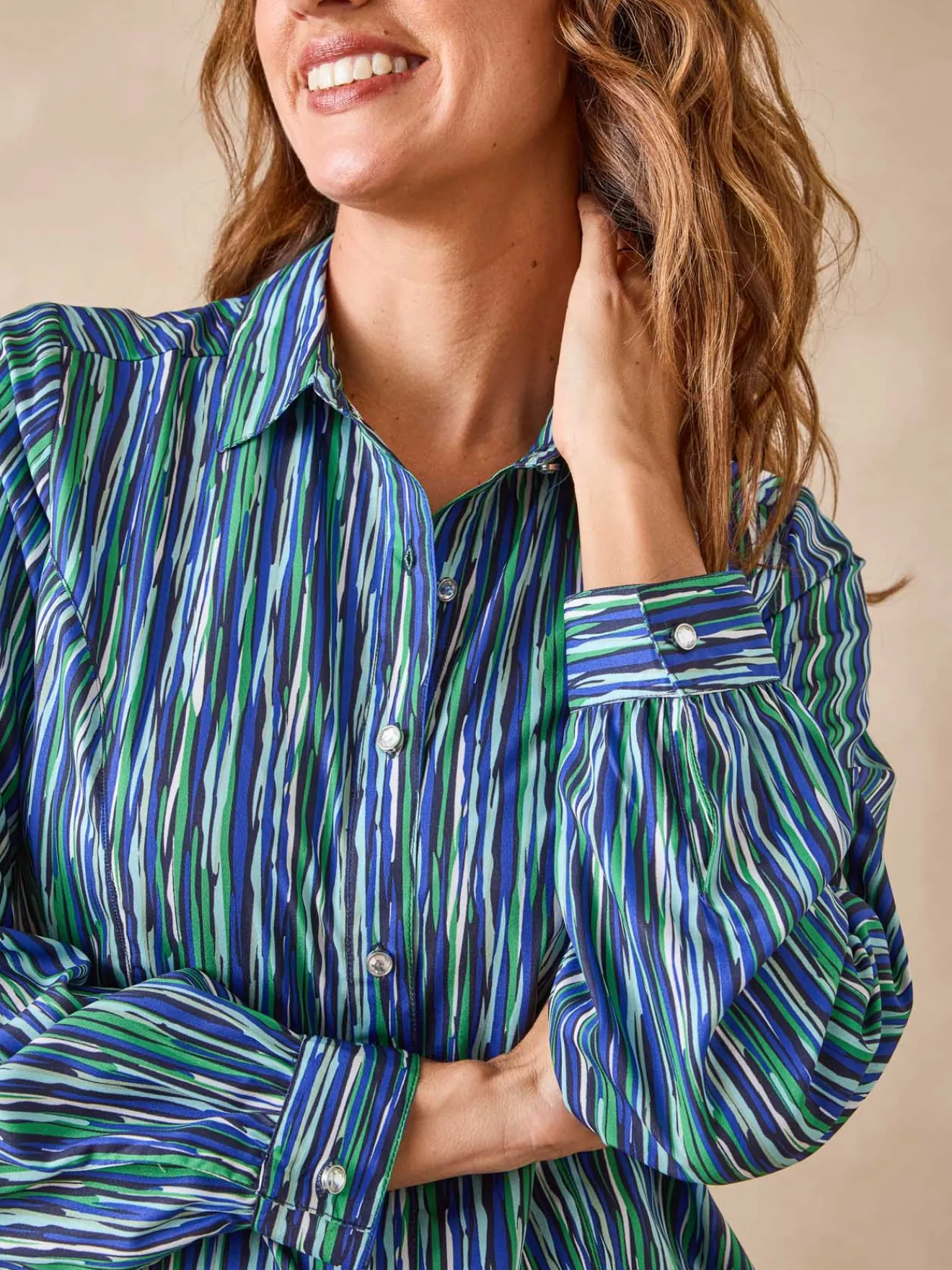 Un toucher tout doux pour ce chemisier imprimé, indispensable d’une garde-robe élégante.
