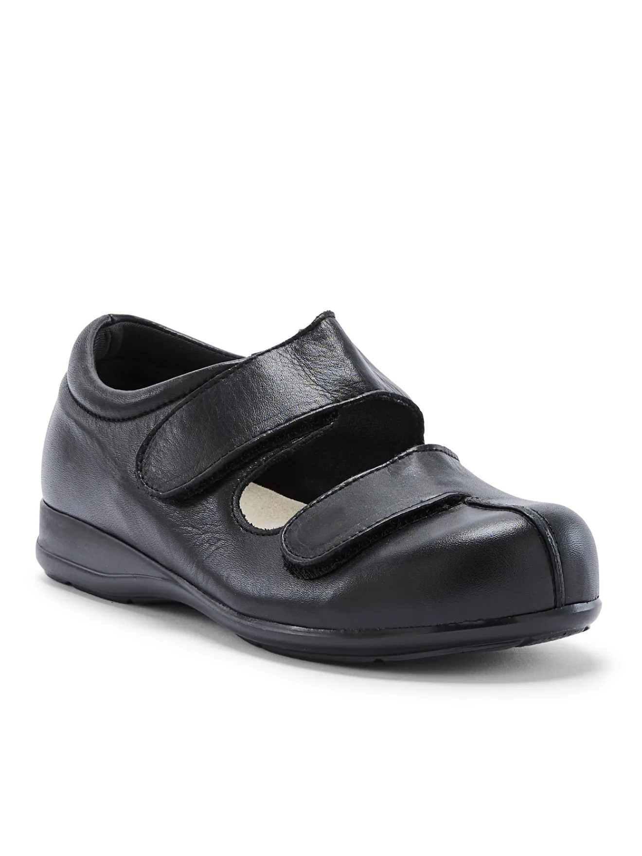 Derbies femme : ouverture par 2 pattes auto-agrippantes pour un enfilage aisé. Ultra-larges.