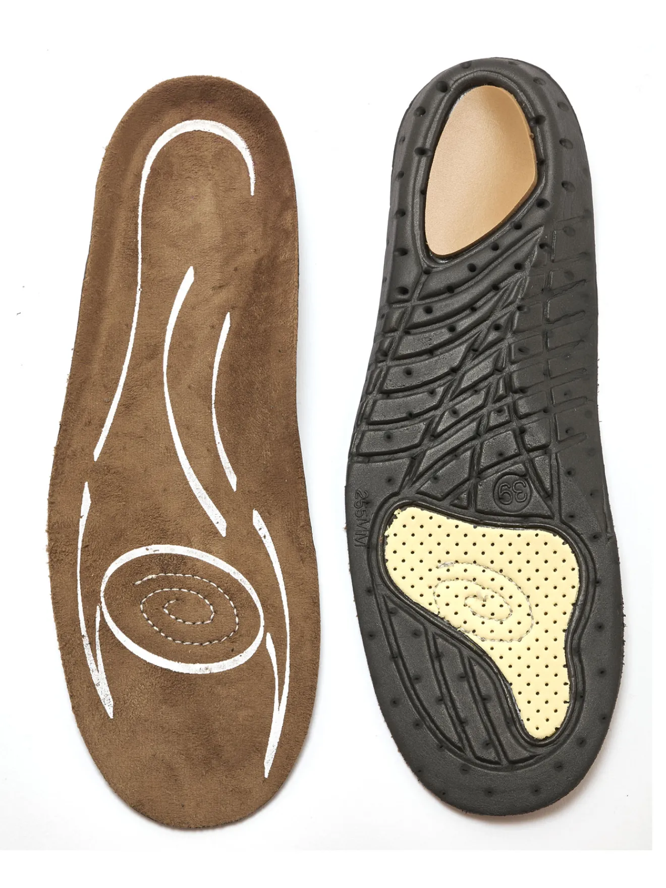 Souples et légères, cette paire de semelles amortit efficacement les chocs et stabilise le pied grâce aux inserts positionnés à l’avant du pied, au niveau des métatarses et au talon.