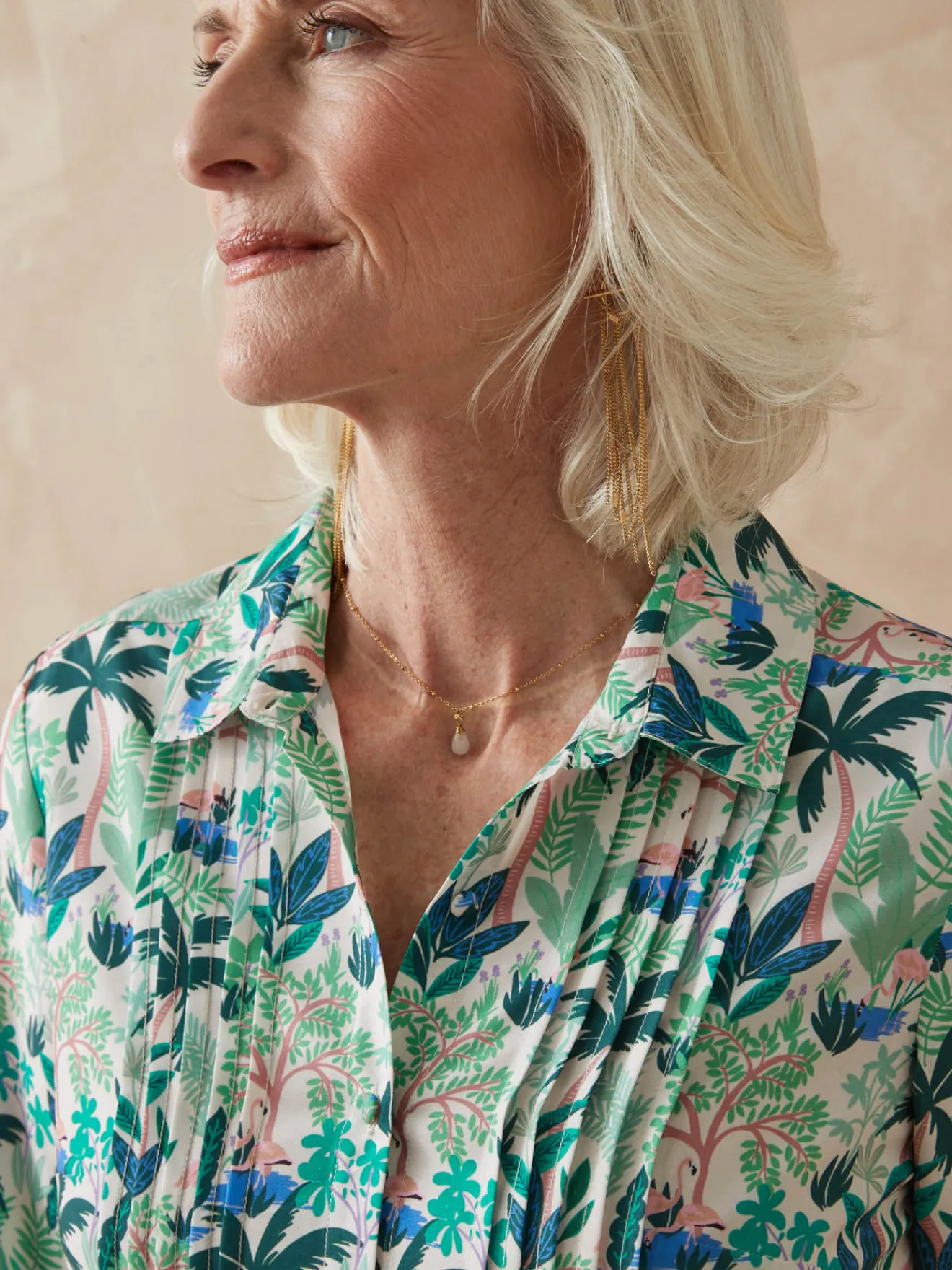 Avec ses petits plis joliment travaillés pour former un effet plastron, ce chemisier imprimé est un indipensable de l’élégance. Un chemisier effet plastron aux finitions très soignées.
