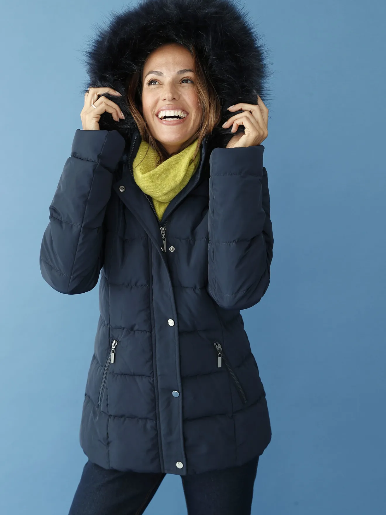 Cette parka unie femme est conçue pour s’adapter à toutes les morphologies : petites et grandes tailles.