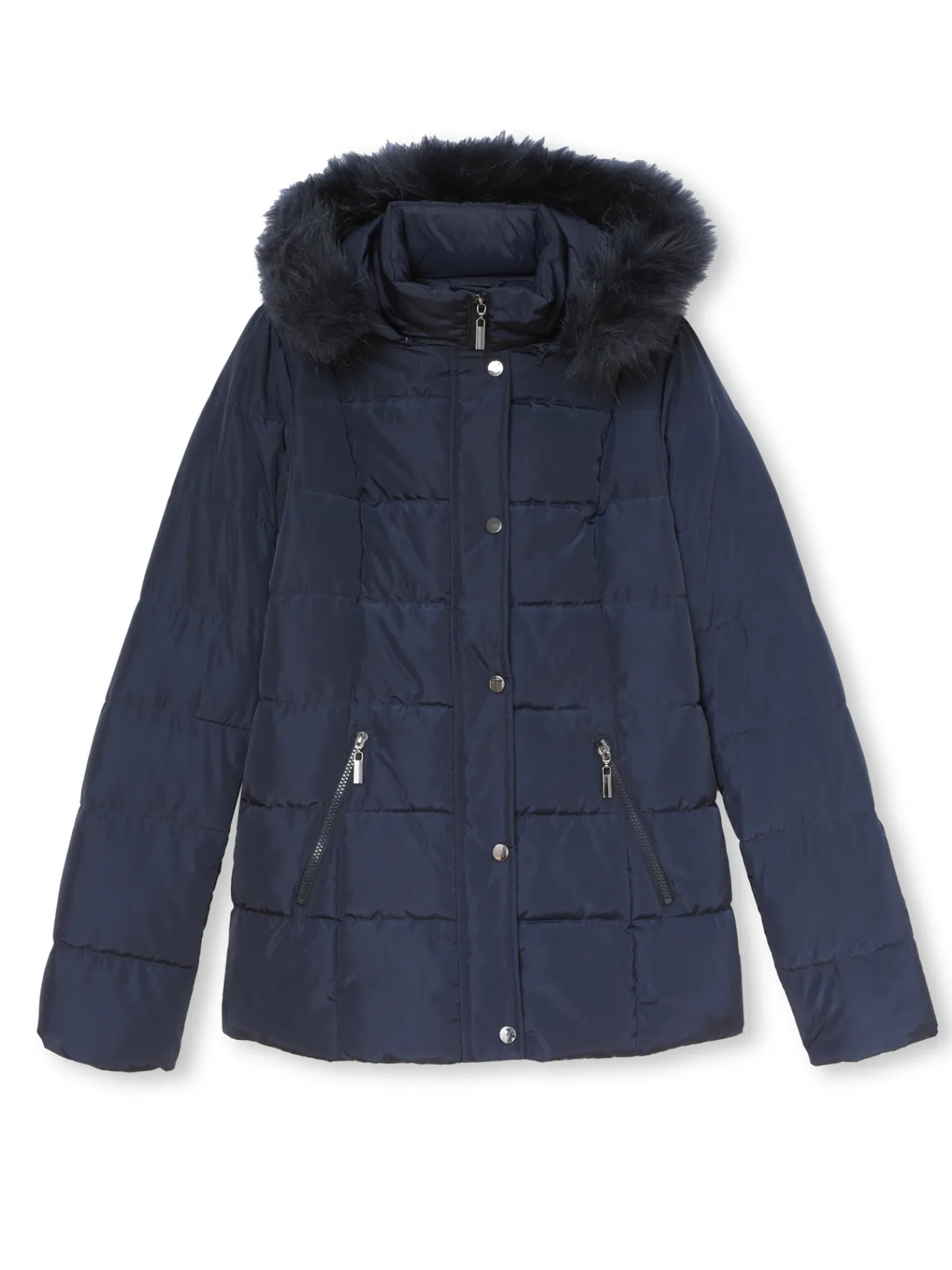 – Capuche amovible par zip, bordée de fausse fourrure amovible (80% acrylique, 20% polyester)