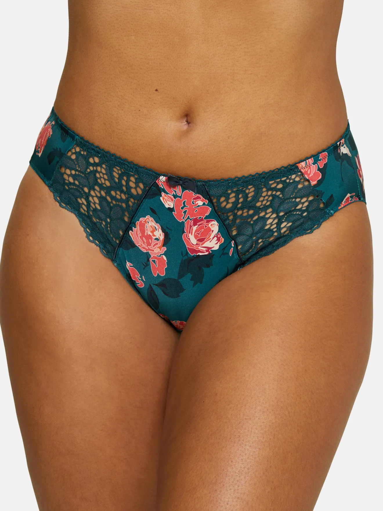 Ce slip SANS COMPLEXE se compose d’une douce microfibre à l’imprimé floral et d’une délicate dentelle.