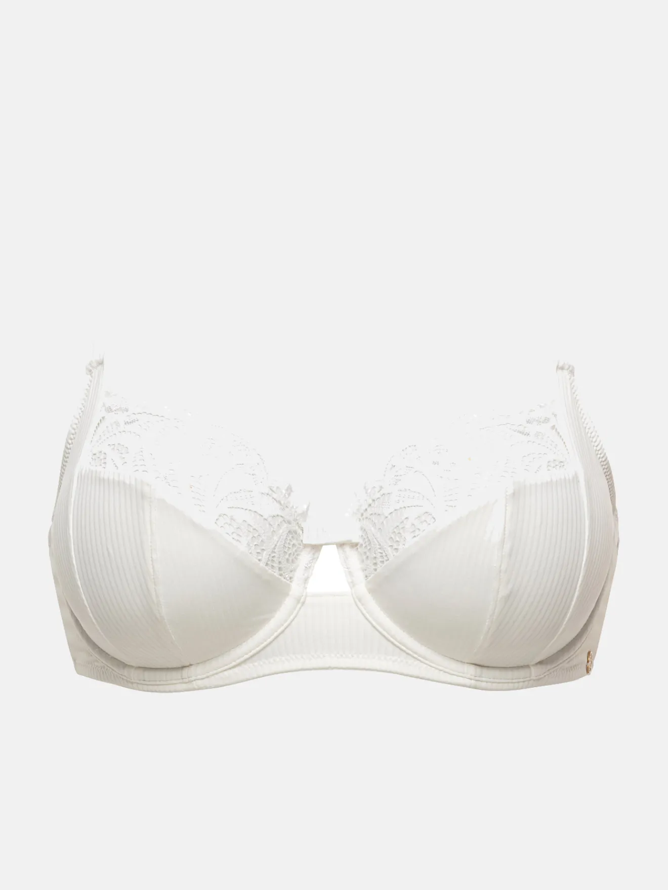 – Bas bonnets en maille texturée et haut bonnet en dentelle, pour épouser les formes de la poitrine