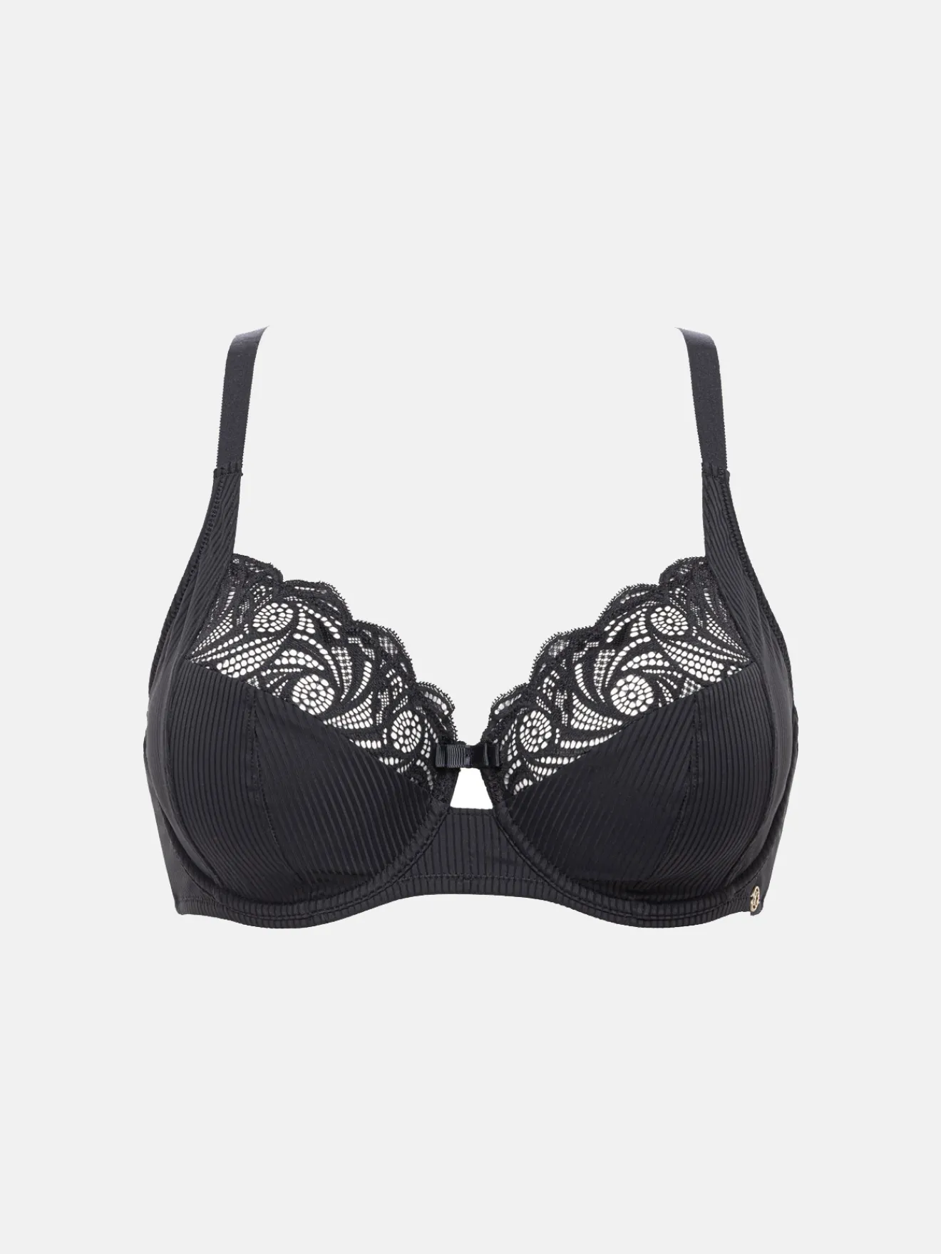 – Bas bonnets en maille texturée et haut bonnet en dentelle, pour épouser les formes de la poitrine