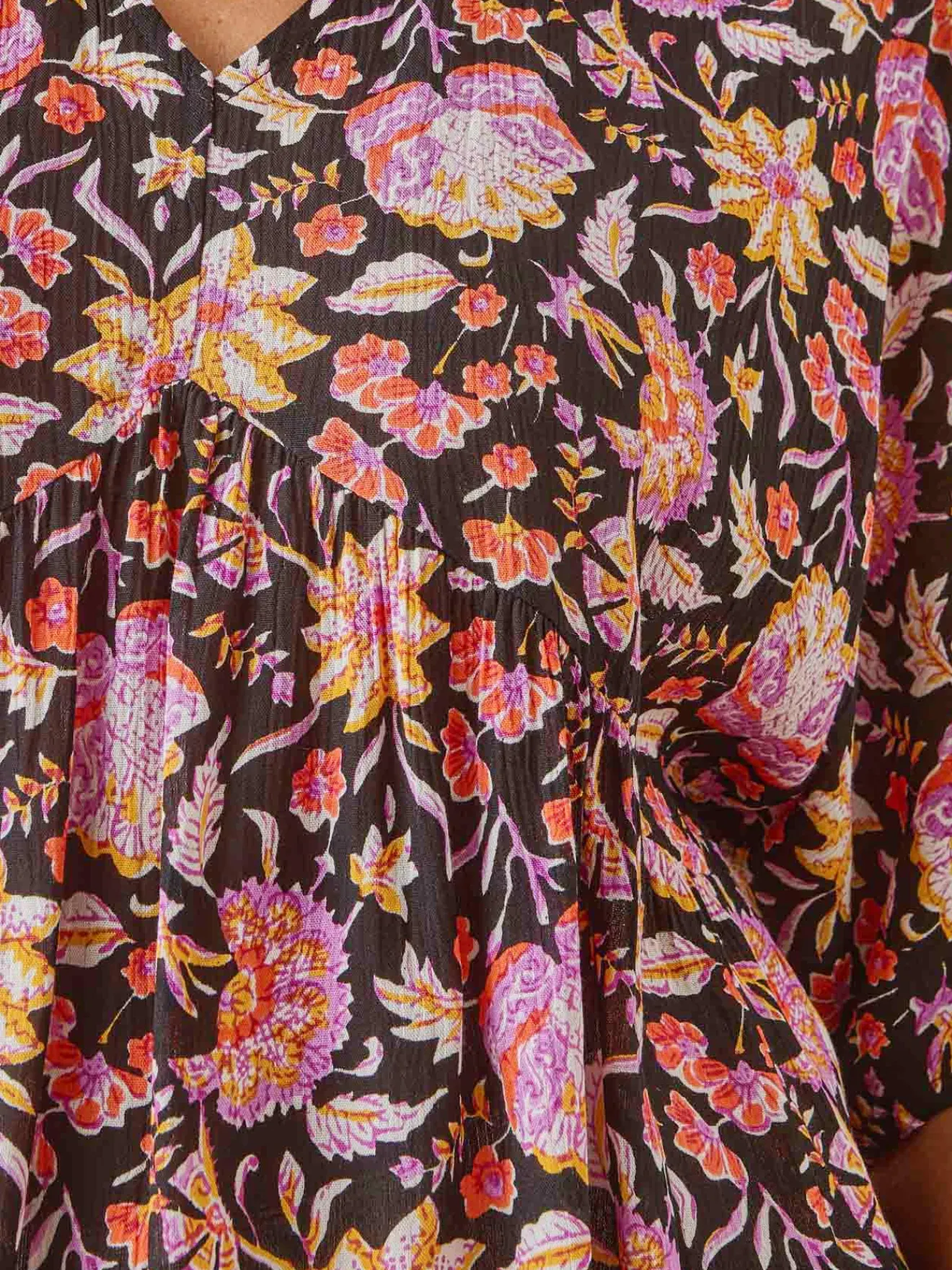 Cette blouse imprimée allie confort et élégance grâce à sa coupe fluide et aérienne. Confectionnée dans un crêpe pure viscose, elle offre une liberté de mouvement idéale pour vos journées décontractées ou vos sorties.