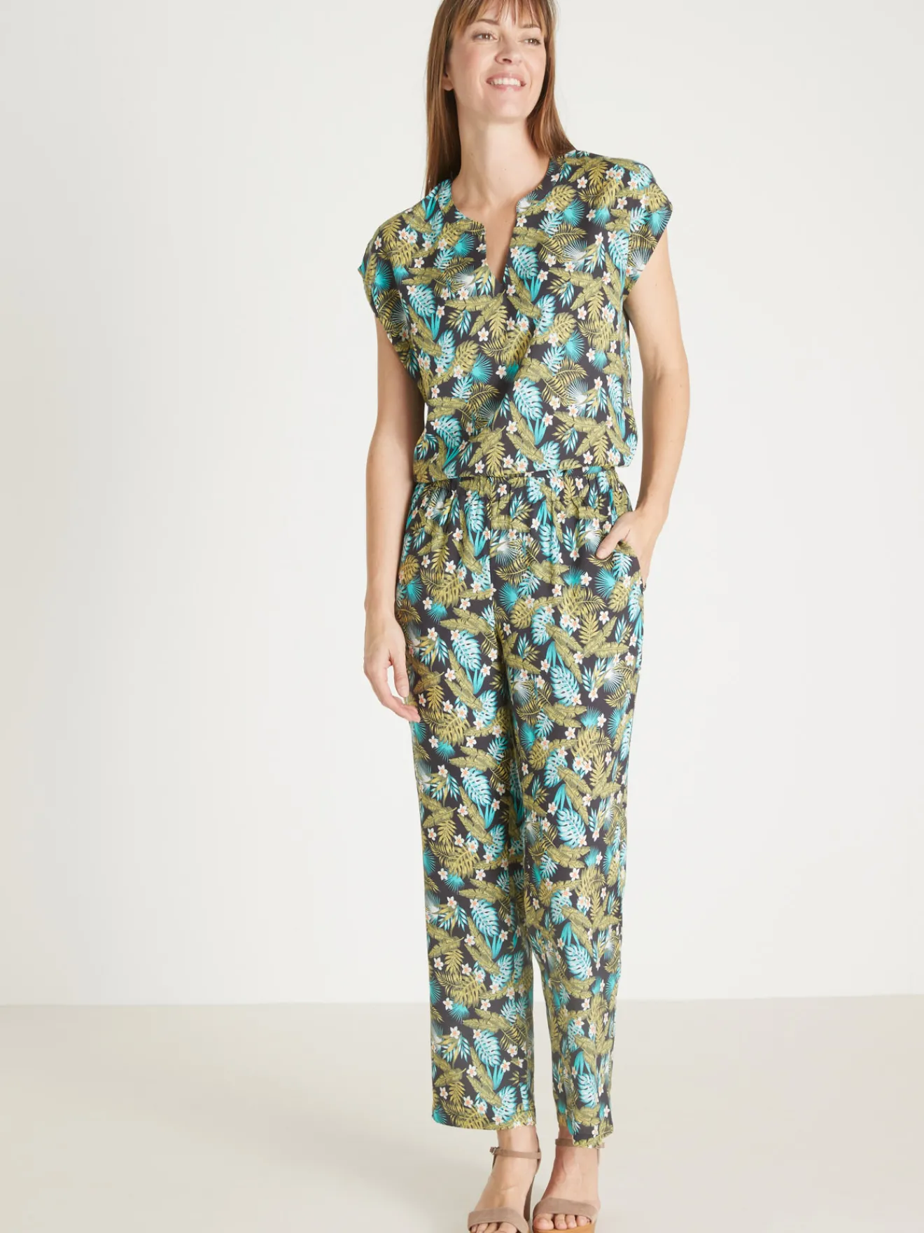 Un tissu fluide et léger pour cette blouse imprimée vite lavée, vite séchée. Sa découpe en V dévoile joliment le décolleté, et ses manches T donnent une ampleur agréable au niveau des épaules.