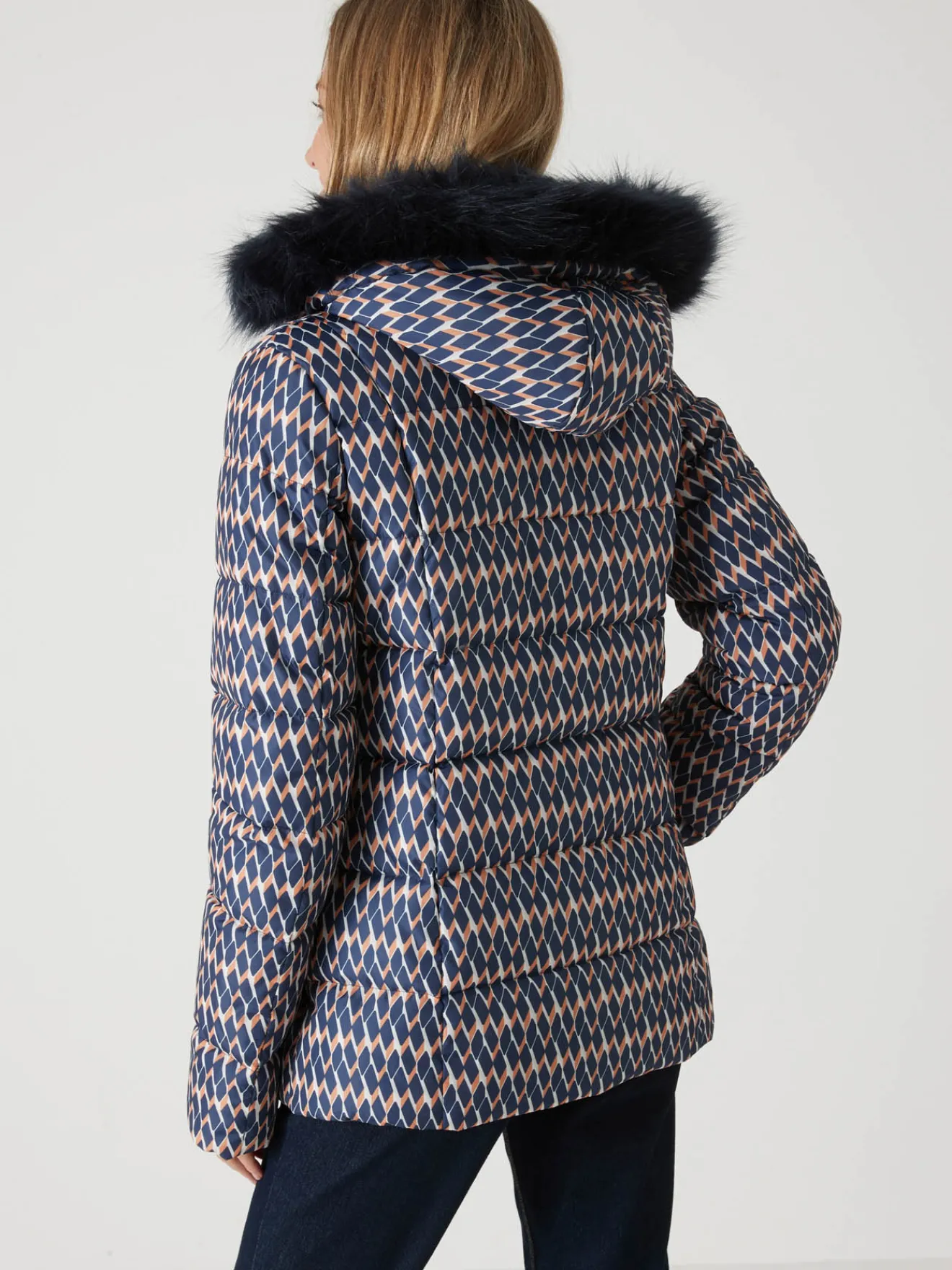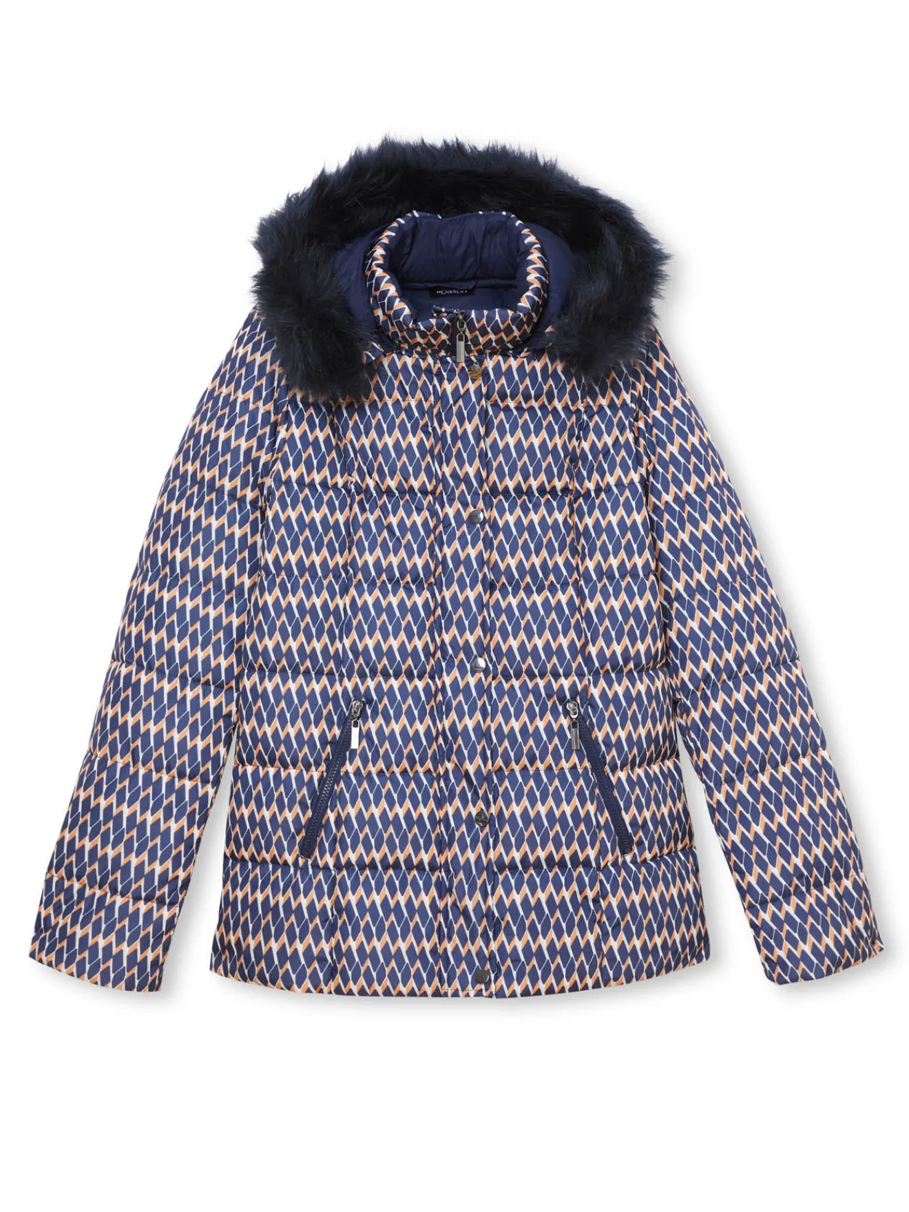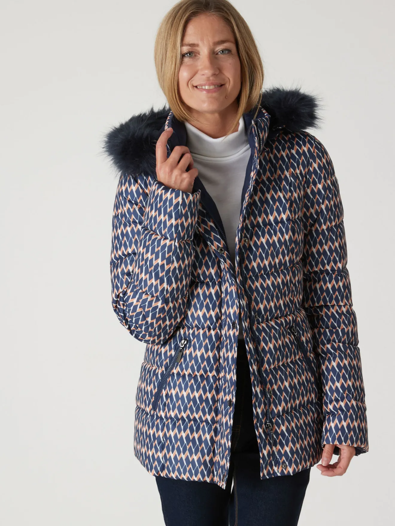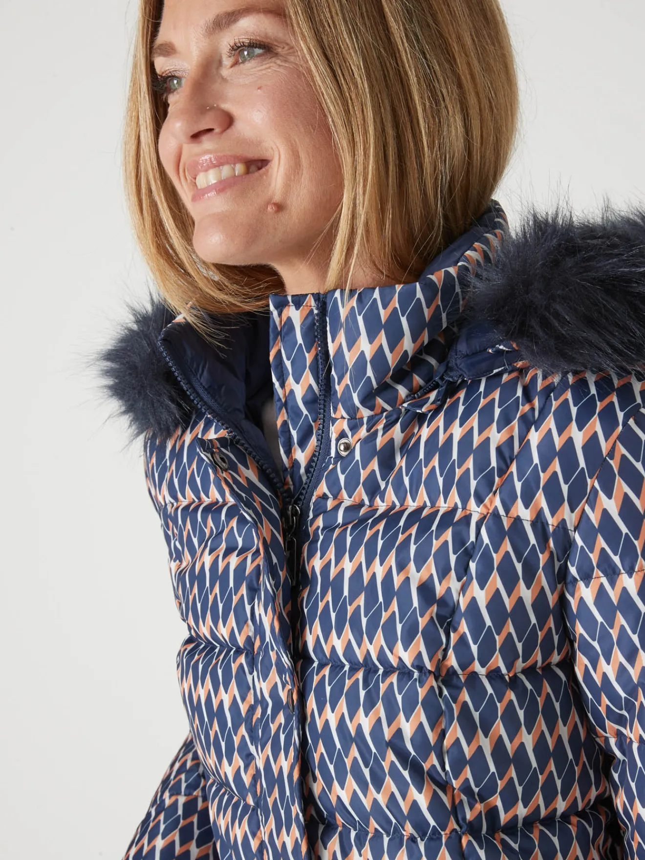 Cette parka imprimée femme est conçue pour s’adapter à toutes les morphologies : petites et grandes tailles.