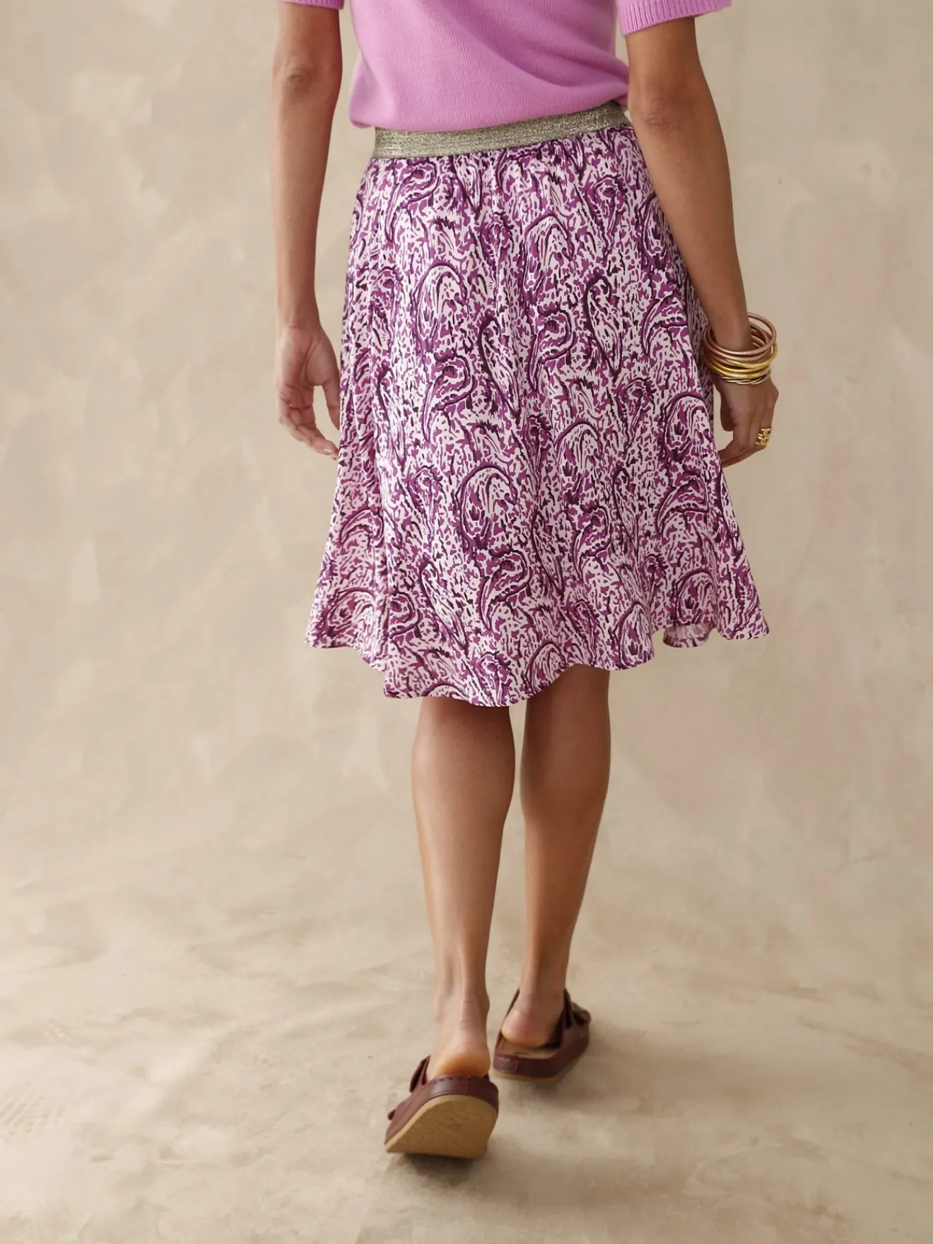 Cette jupe élastiquée est exactement le modèle qu’il vous faut. Cette jupe courte s’adapte en souplesse à la taille et on adore le fil brillant qui rehausse sa ceinture.