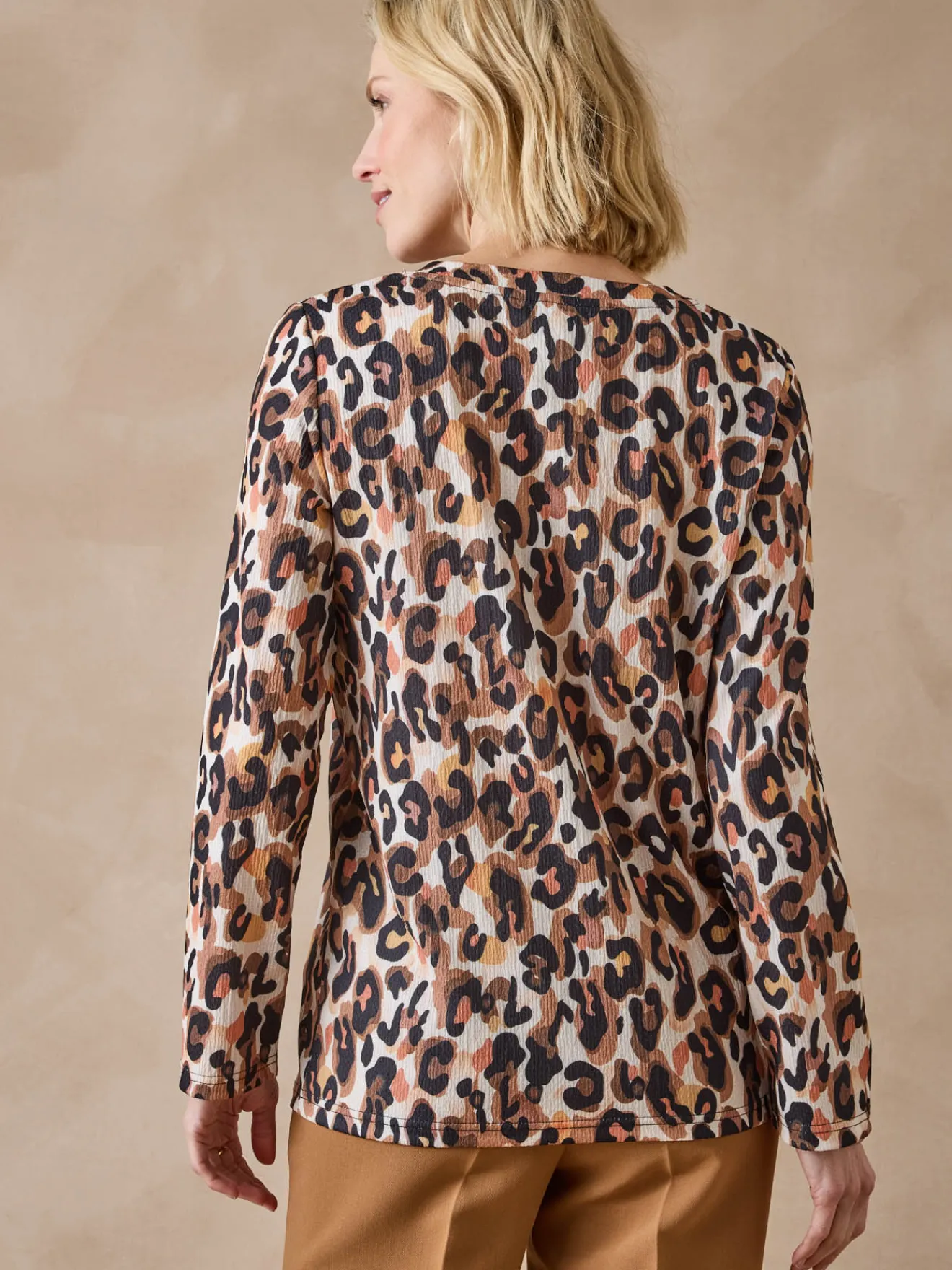 Pour se faire joliment remarquer, ce tee-shirt manches longues a choisi un imprimé très stylé et une maille gaufrée fantaisie… Prête à l’adopter ?