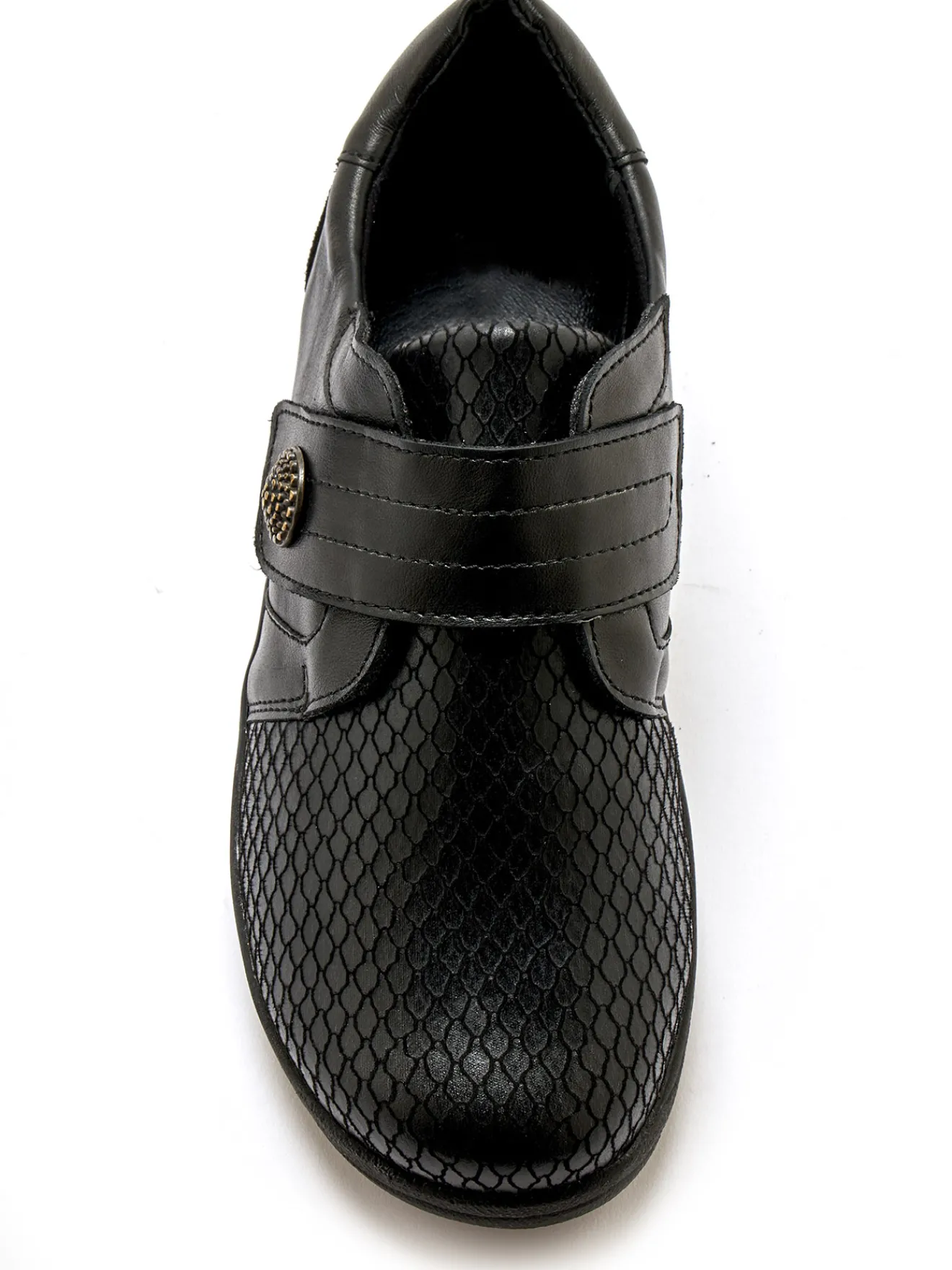 Ces derbies ultra larges PEDICONFORT® cachent des trésors de douceur pour les pieds forts ou douloureux qui apprécieront leur grand confort et l’ajustement parfait que permet la patte scratch.