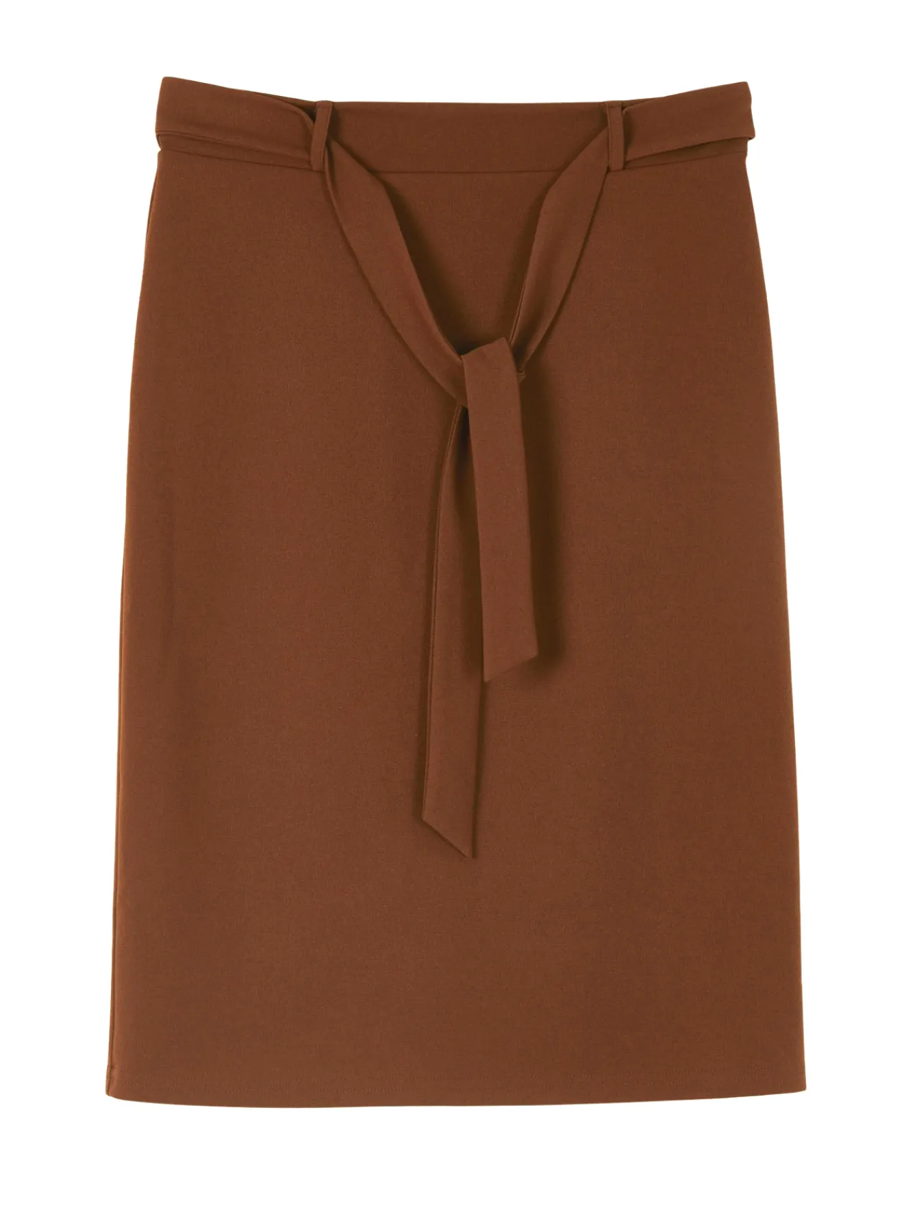 Sous la ceinture à large passants de cette jupe unie se cache une taille élastiquée… un bon compromis entre style et confort !