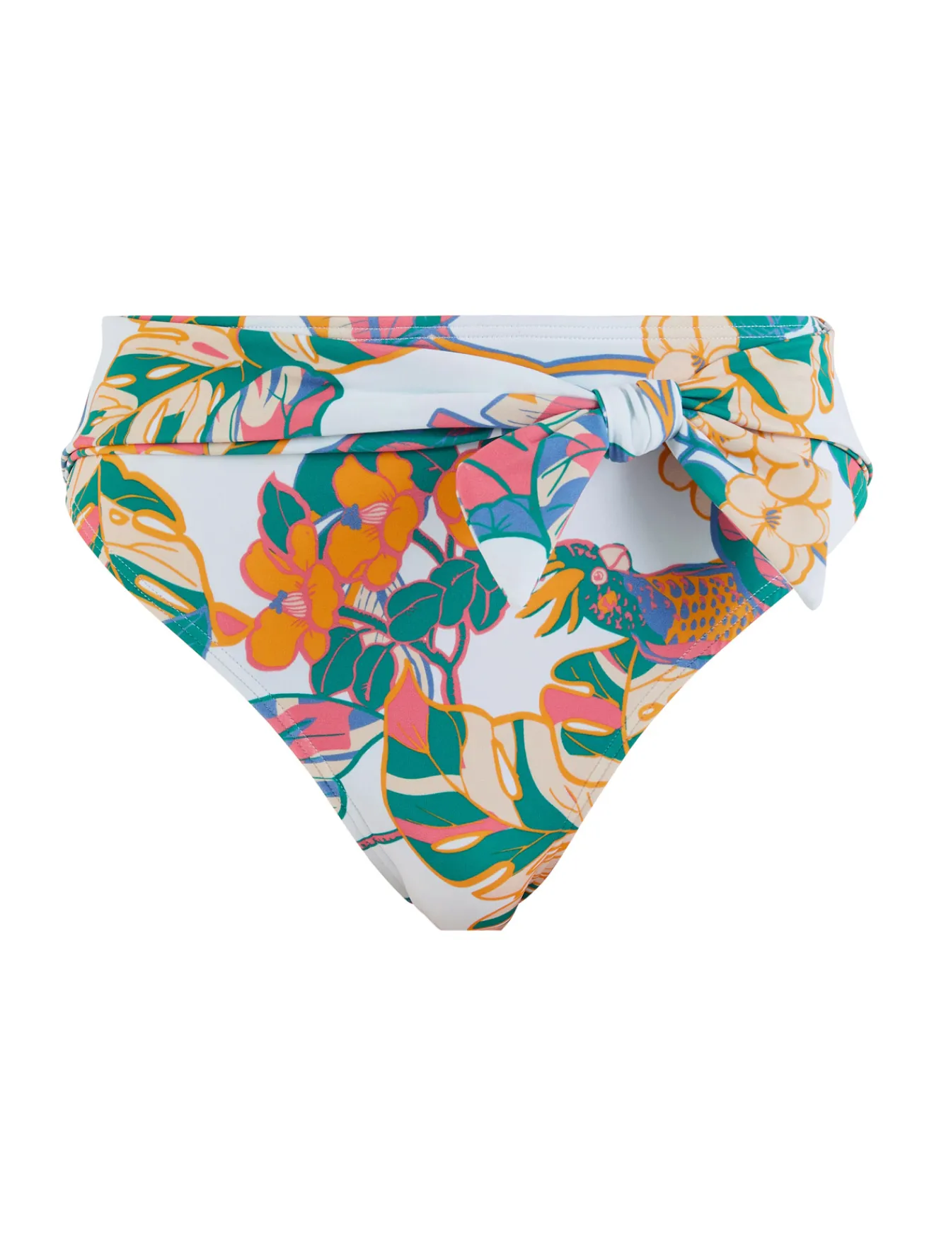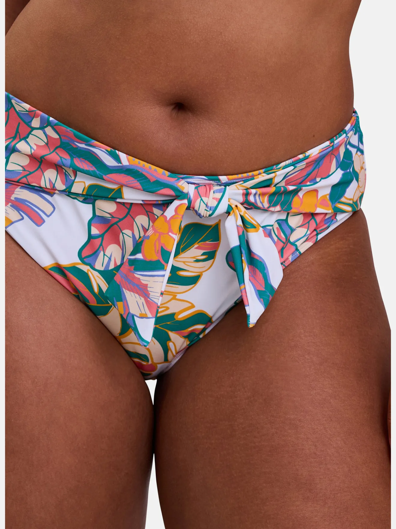 Ce slip de bain SANS COMPLEXE est très séduisant de part son détail de liens à nouer à la taille et son imprimé tropical qui vous transporte vers des destinations ensoleillées.