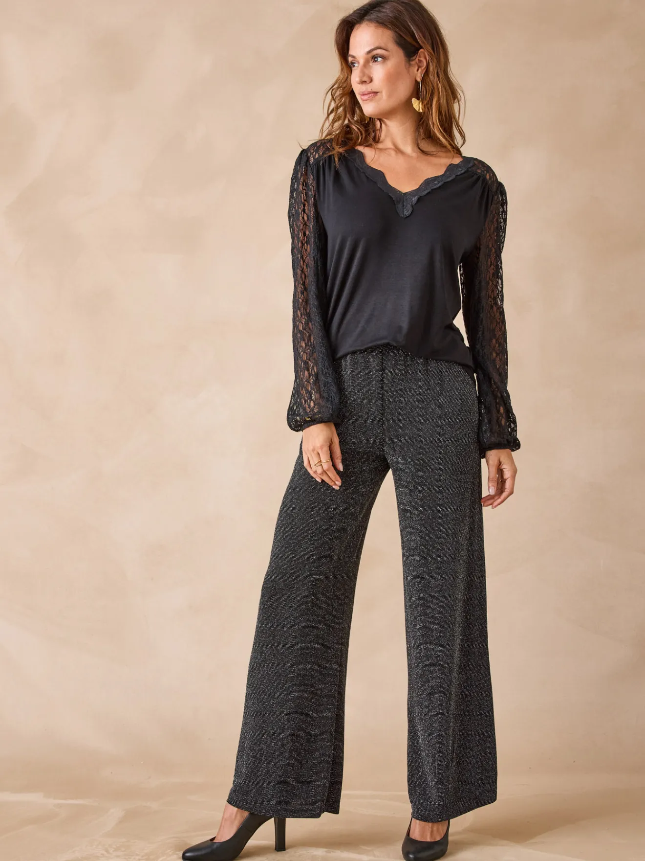 Ce T-shirt dentelle est conçu pour s’adapter à toutes les morphologies : petites et grandes tailles.
