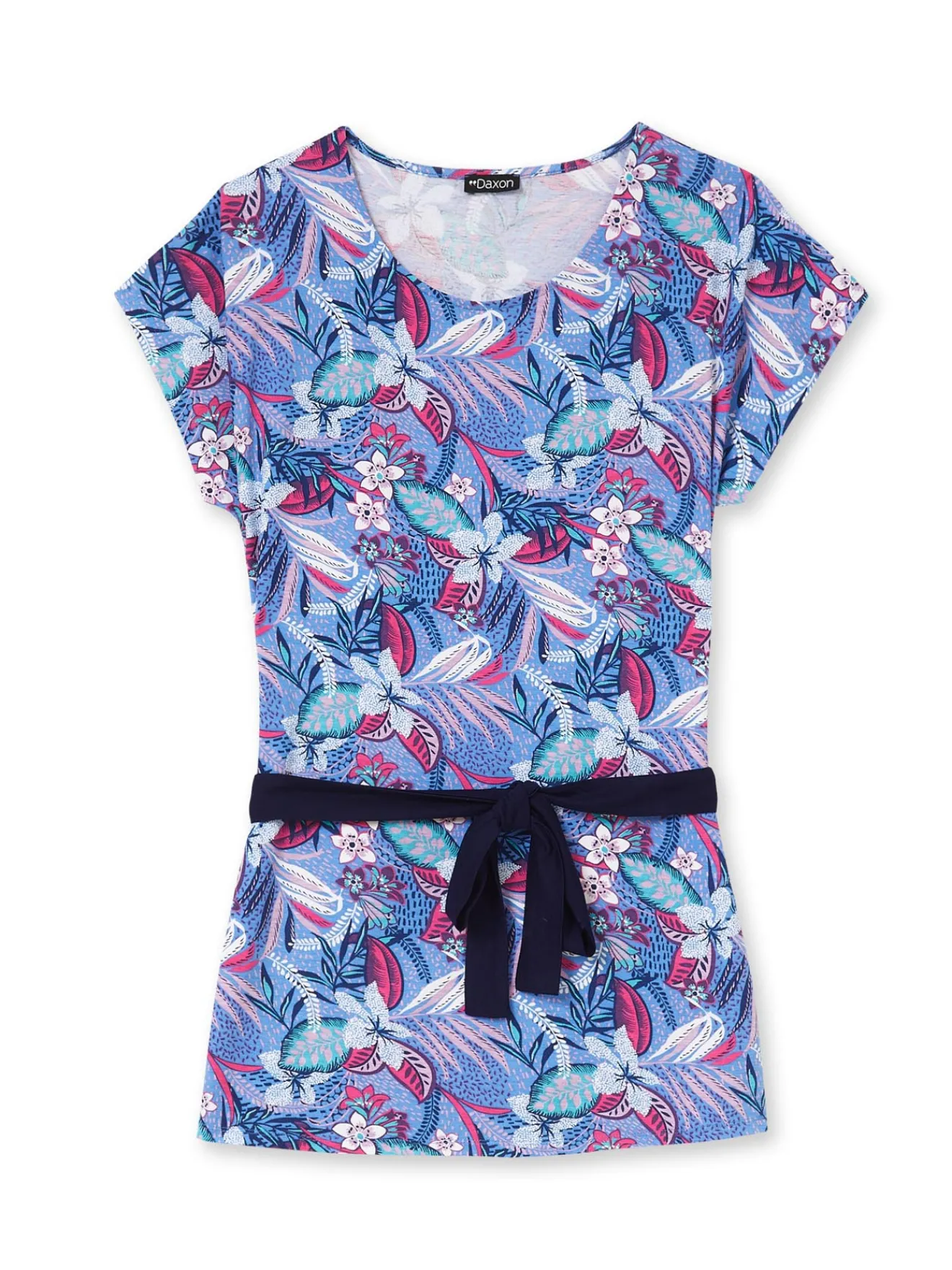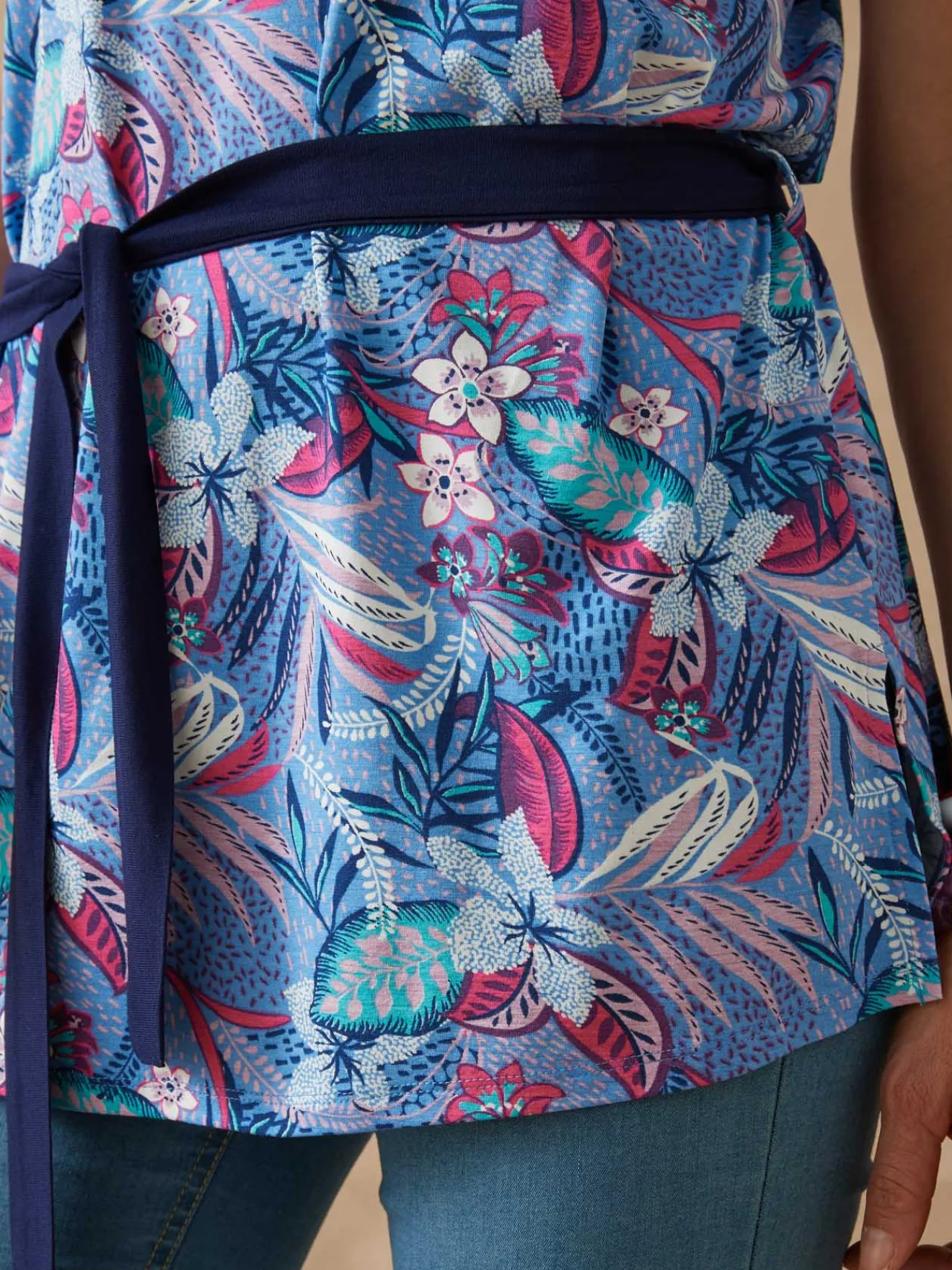 Une encolure bateau flatteuse, des manches T pour l’aisance, une maille extensible tout confort et un imprimé chatoyant… autant d’atouts qui font de cette tunique fluide notre chouchou de la saison ! Vous la porterez avec ou sans sa ceinture unie, comme il vous plaît !