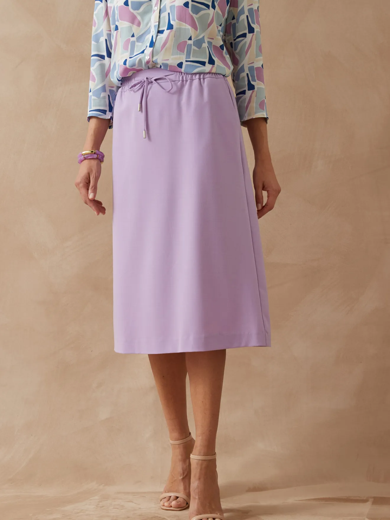 Féminité d’une coupe trapèze, confort d’un tissu enrichi d’un peu d’élasthanne pour la liberté de mouvements et d’une ceinture élastiquée : cette jupe évasée est un bon pion du dressing.