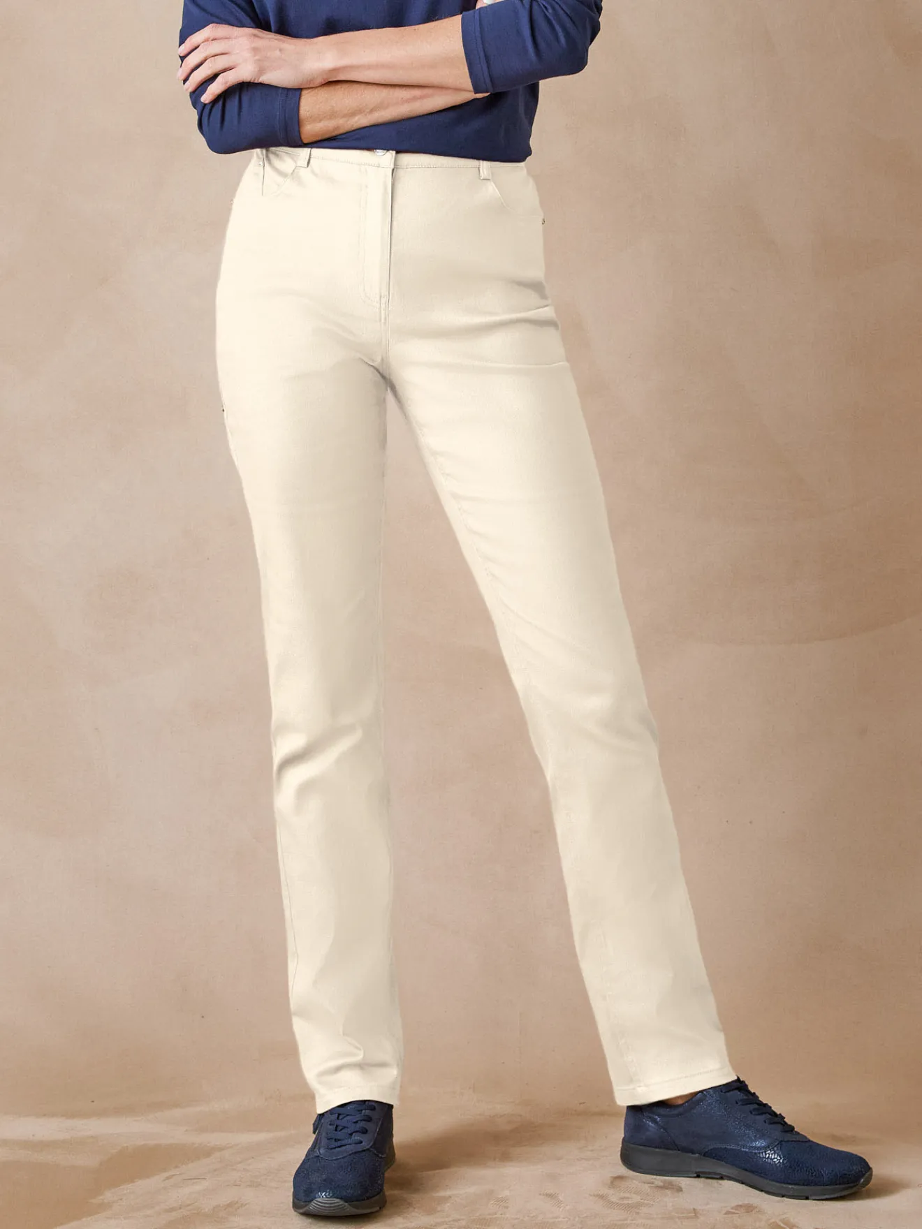 L’emblématique pantalon 5 poches se renouvelle dans une jolie gamme aux tonalités actuelles. Avec bien sûr toujours le même confort grâce une ceinture élastiquée et un tissu extensible.